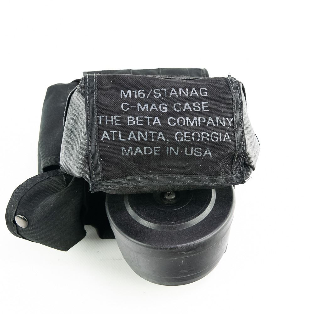 Beta Corporation USA made C-MAG 100rd double drum magazine for AR-15/M16 Rifle. Magazine is brand new in pouch with no wear. These magazines are no longer made and very hard to find collectibles now. CANNOT SELL TO ILLINOIS RESIDENTS!! See photos.