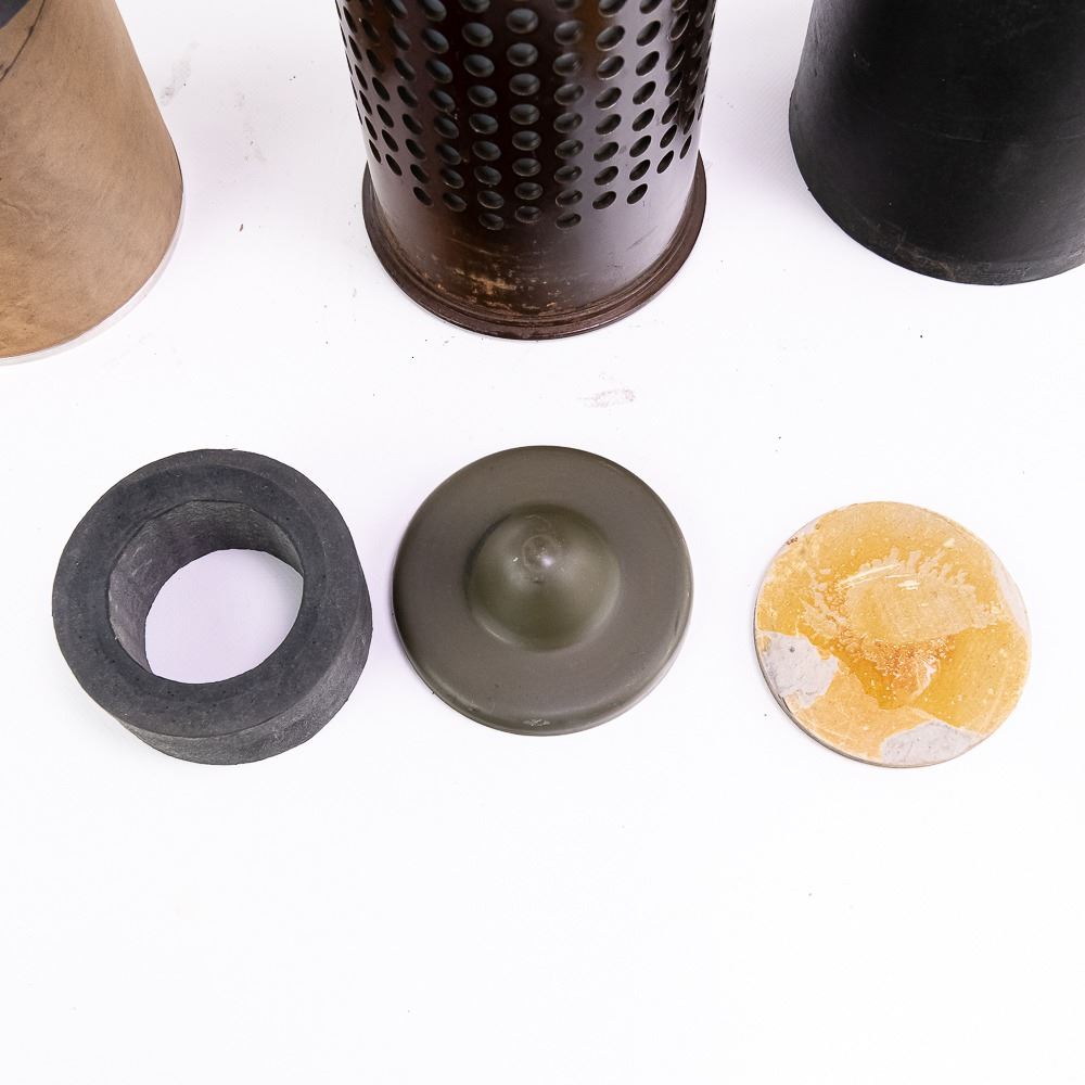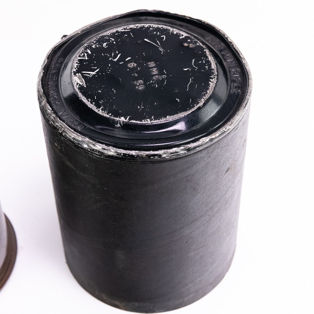 This is a very nice condition 106mm M368 Drill Round for the M40 Recoilless Rifle. The canister lid is M314 type and dated 1959. The canister side is well marked and dated 1960. Headstamp is dated 1956. Round is 38" long and weights 37 LB. Canister has rubber bumper and OD painted nose cone cap. Bottom canister has some separation Very good to excellent condition.