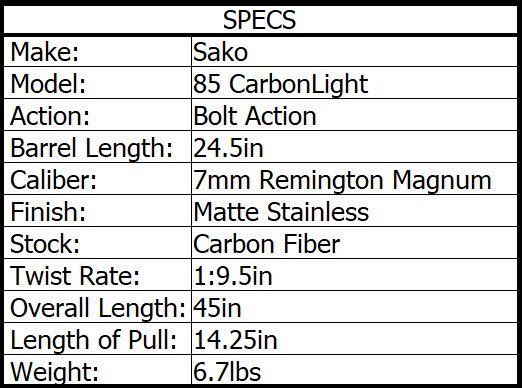 Lot 77 SAKO 85 CARBONLIGHT 7MM REM 24.5in 4rnd