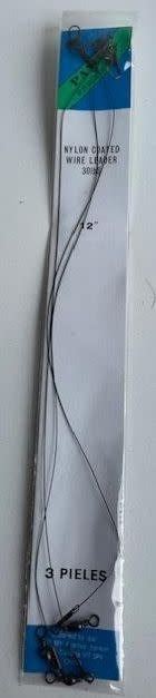Lot 512 12pk of PANCO 12in 30lb BLACK NYLON COATED WIRE LEADER