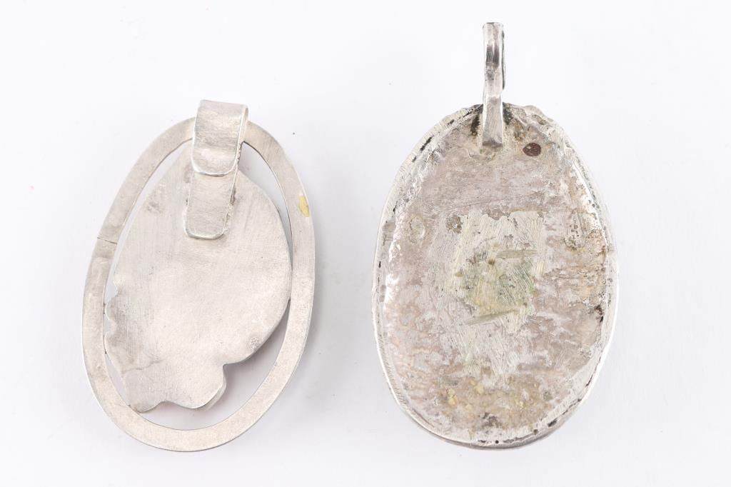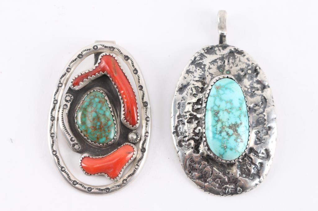 (1)Oval cut, set sterling; (1)Coral and Turquoise, set in sterling.
