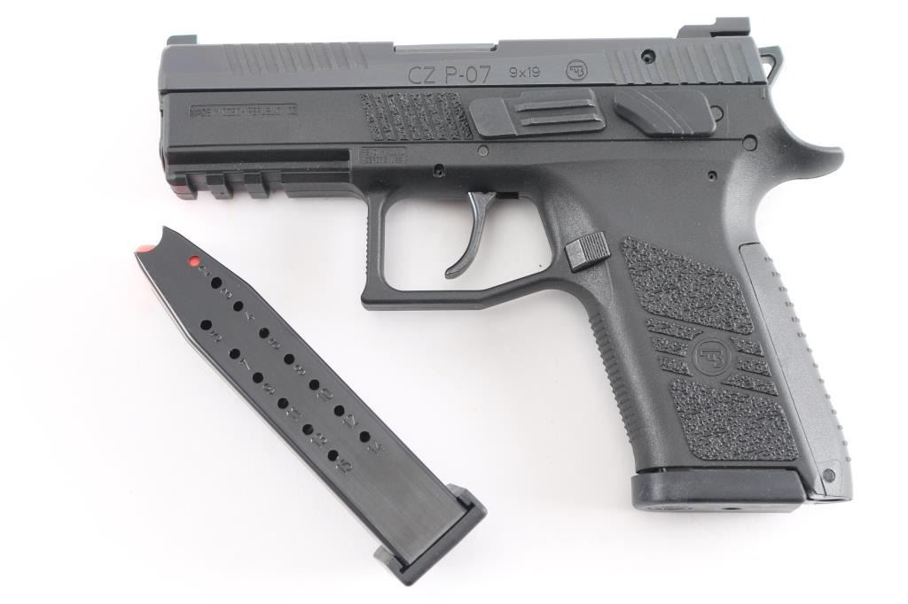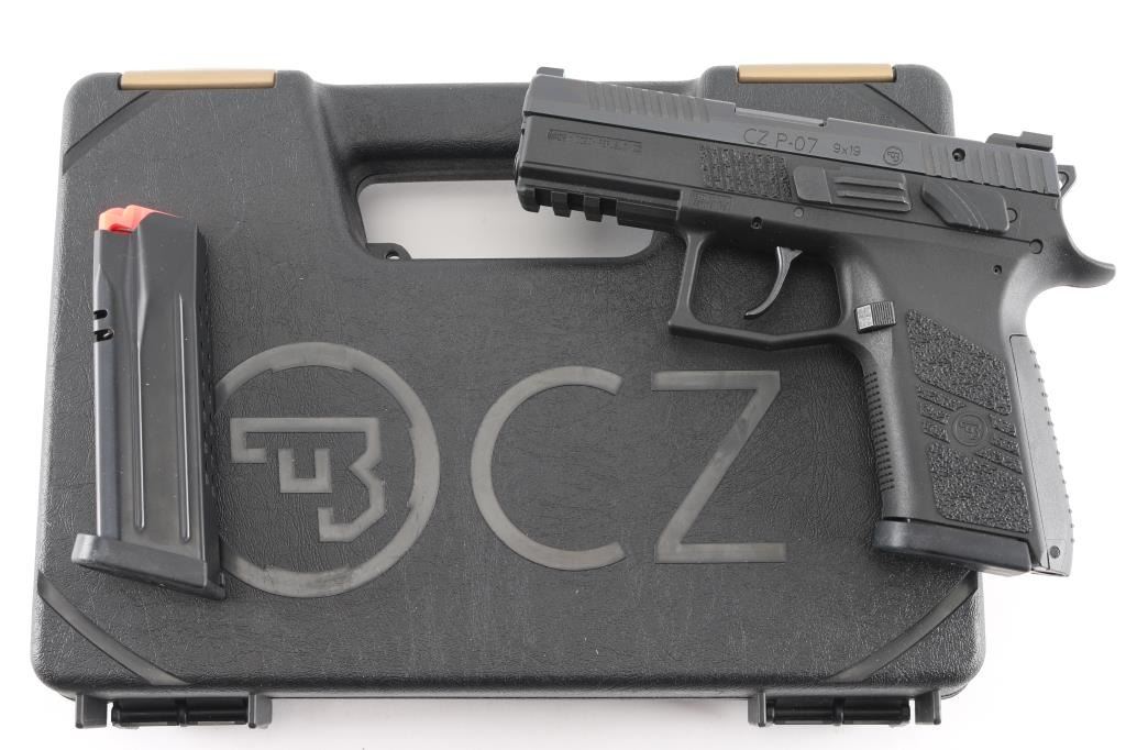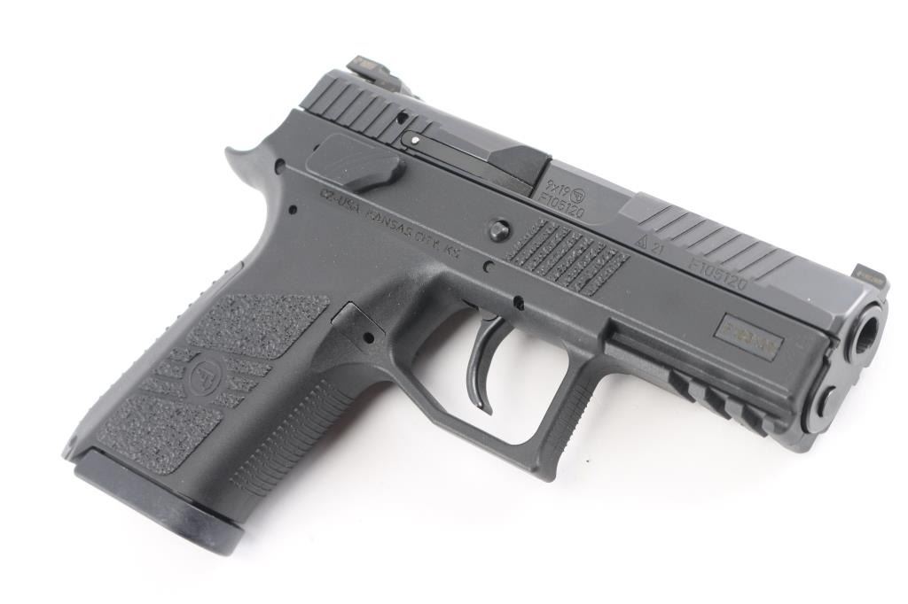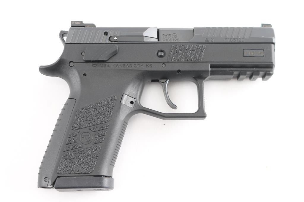 Made in the Czech Republic and imported by CZ USA, this is a compact DA/SA pistol with an external hammer and highly durable fiberglass-reinforced polymer frame. The "Duty" size firearm was mainly intended for the armed forces and concealed carry. It features a stainless slide with front and rear slide serrations, serrated hammer spur and three dot luminescent night sights. The frame has a tactical rail and textured grips with stippling on the front and back straps and frame sides for fingers The bore is new. Original manual thumb decocker and slide lock have been replaced with oversized parts (originals are in the hard case). Comes with original factory hard case, cable lock, backstraps owners manual, cleaning brush and two (2) 15 round magazines. This gun is like new and retains 100% of finish.