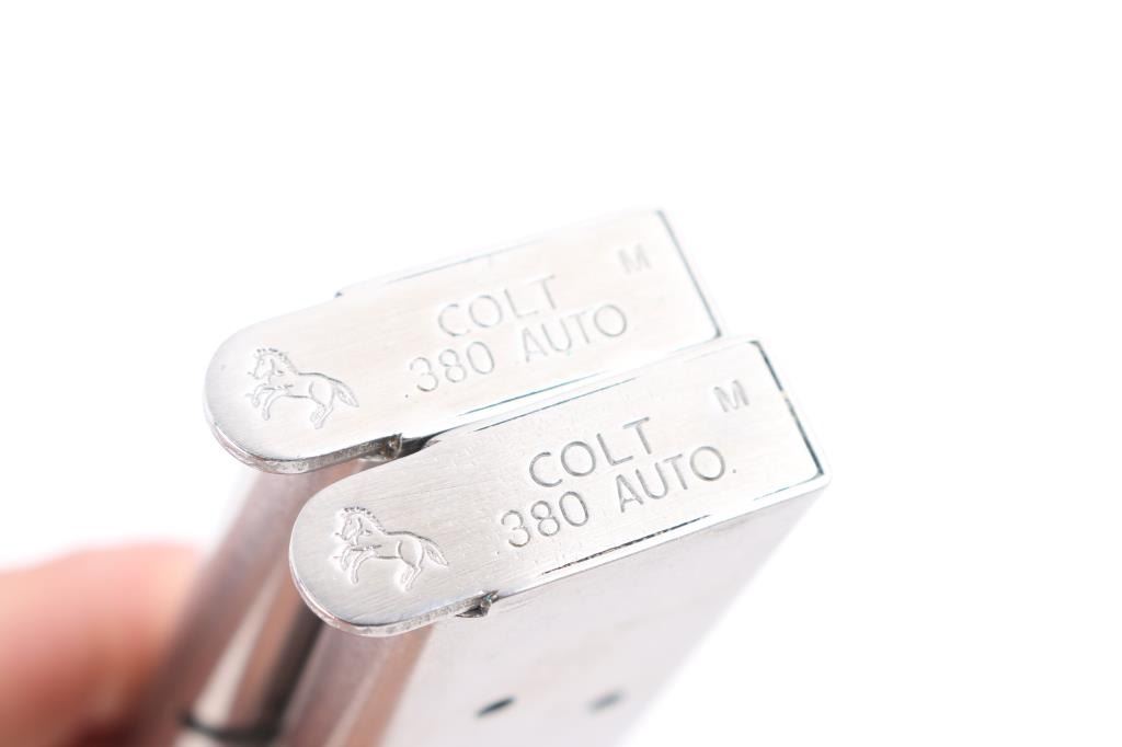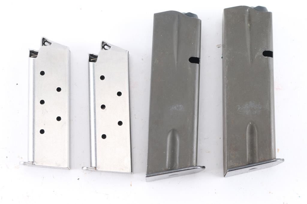 includes 2 - Browning Hi-power 15rd unknown brand & 2 - Colt Gov't. 380 ACP. Good to very good condition.