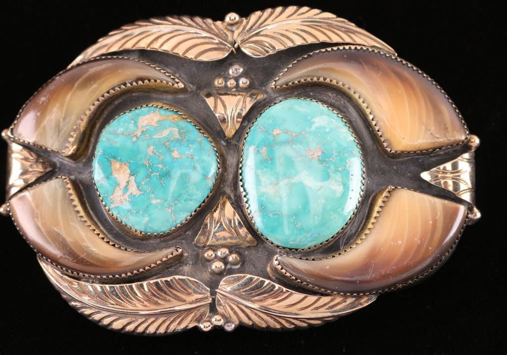 Lot 628 Bear Claw & Turquoise Belt Buckle
