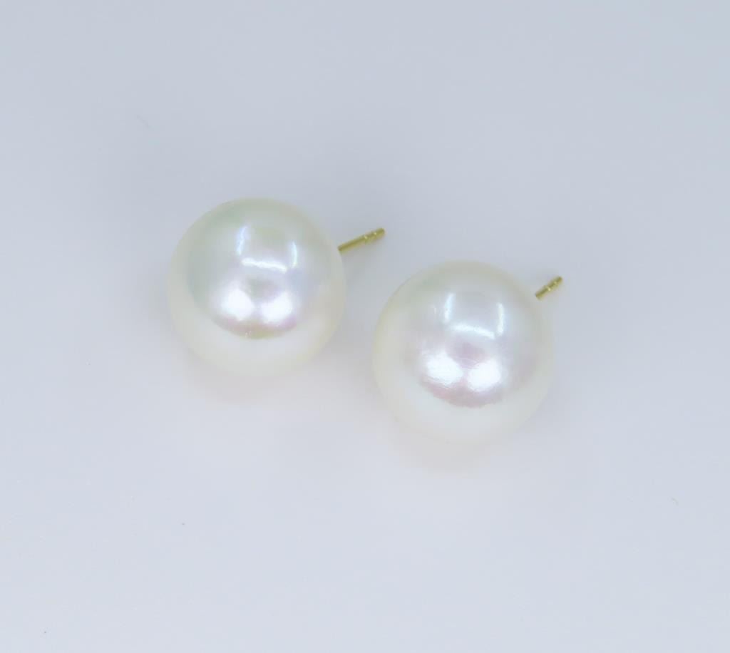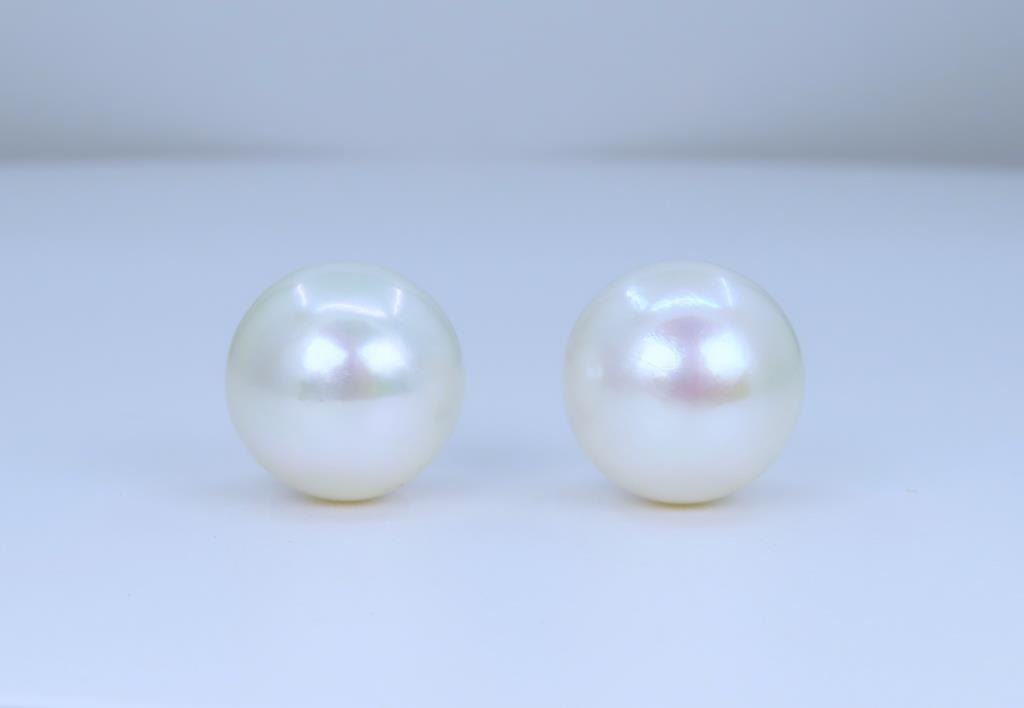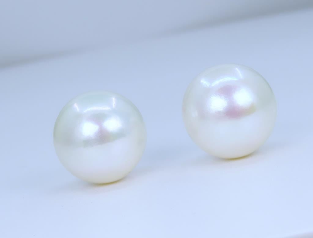 2. Very Rare a very large Natural South Sea pearl earrings averaging 15.00 MM in diameters of fine rose-pink colors and high luster set with 18 karat yellow gold posts stamped AU. Larger South Sea Pearls over 14.00 MM in diameters are becoming very expensive and more difficult to acquire. Estimates Retail $4,000-$5,000