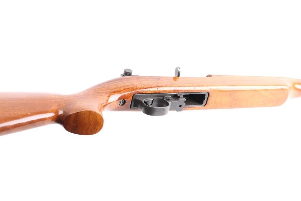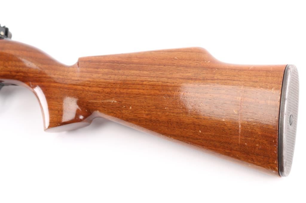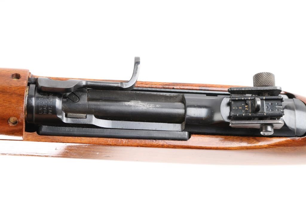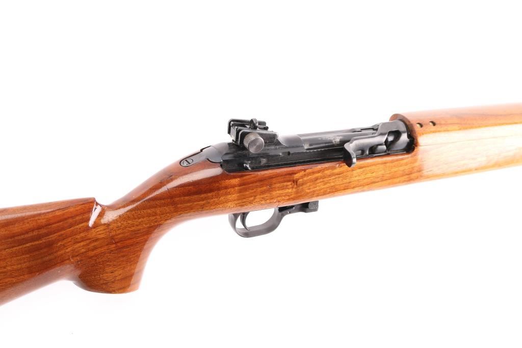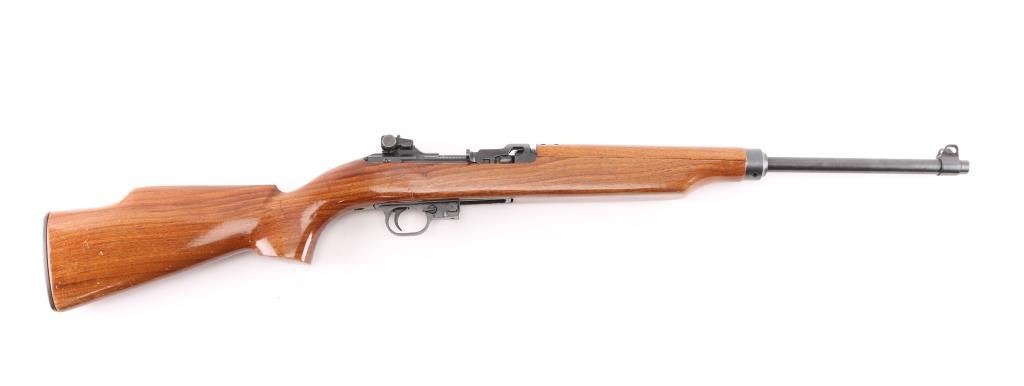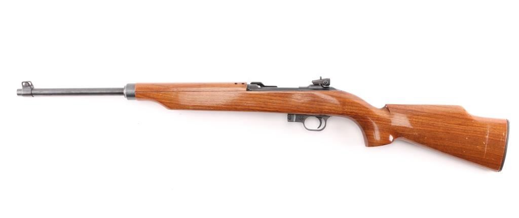 SN: 194136Universal M1 Carbine Model 1005 Deluxe with high polish blue and high gloss Monte Carlo stock. This is exactly how it left the factory in the mid-1960's as a first generation series (mainly used USGI parts). 18" barrel. Magazine release stamped "M", USGI knurled butt plate. Bore is excellent/bright, finish is about 97% with some friction wear on the round bolt, Action is smooth, wood is very good, with some minor scratches on the lower shoulder stock.