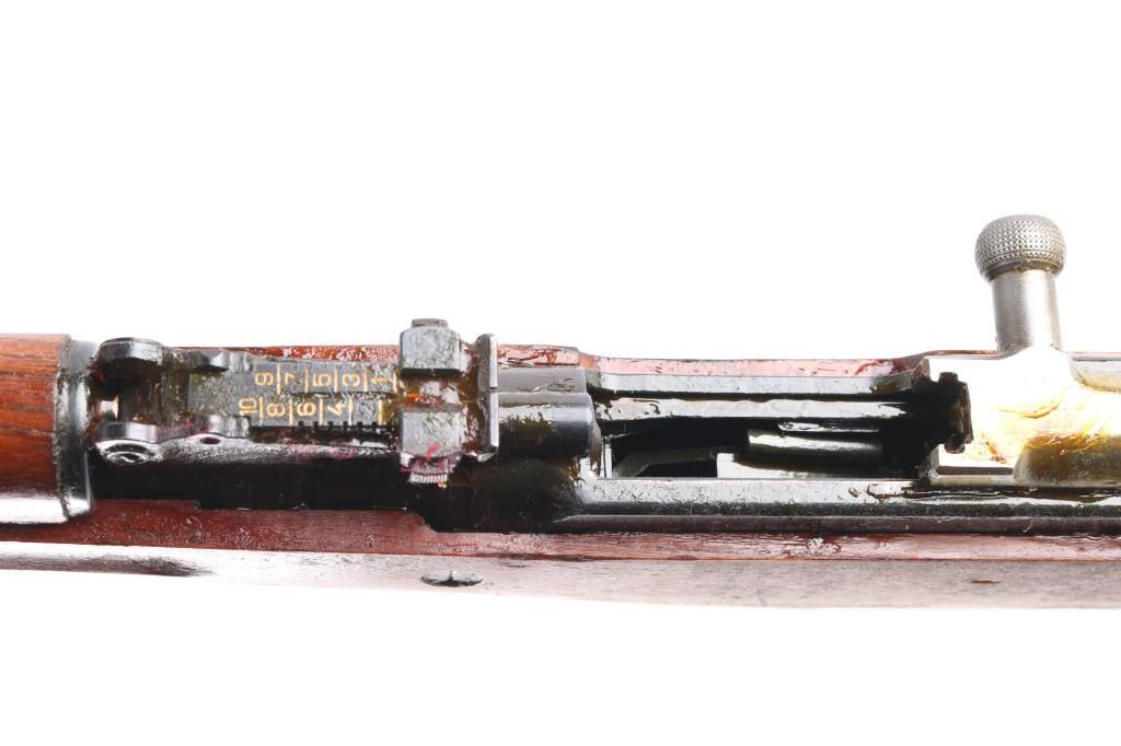 Zastava M59 PAP, also known as Papovka, is a Yugoslav licensed version of Soviet SKS semi-automatic rifle.'Mdl 59' Yugoslavian made gas-operated semi automatic rifle chambered in 7.62x39mm. Imported by CAI, right barrel. Features a blued finish, 20.5" barrel, hooded post front sight, tangent rear sight graduated to1,000 meters, cleaning rod, folding blade bayonet, manual safety, smooth trigger, fixed 10 round magazine, smooth wood handguard, pistol grip shoulder stock and trapdoor metal buttplate. Rifle has a heavy coat of cosmoline from storage, bolt carrier is locked to the rear, stuck due to dried cosmoline, needs cleaning. Serial number matches on the receiver, and stock. Rifle retains approximately 98% of it's blued finish, bore appears rough, frosting in the grooves, strong rifling, may improve with cleaning, and wood stocks are very good. Serial numbers puts it at pre 1967,