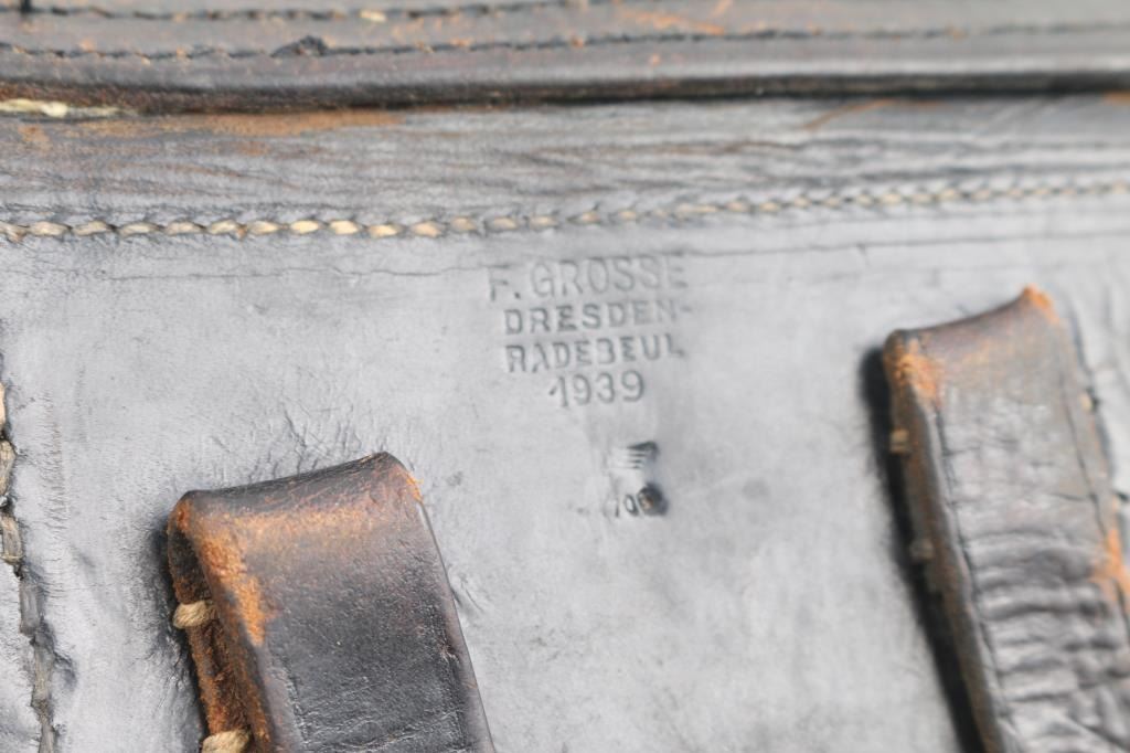 Original German WW2 P-08 'hard shell' holster. Stamped "F. Gross Dresden Radebeul 1939" in four lines. Below that is the correct waffenamt "WaW700" (Feint). Has the take down tool with waffenamt. Overall very good condition, all stitching intact, shows some wear/scuffs,