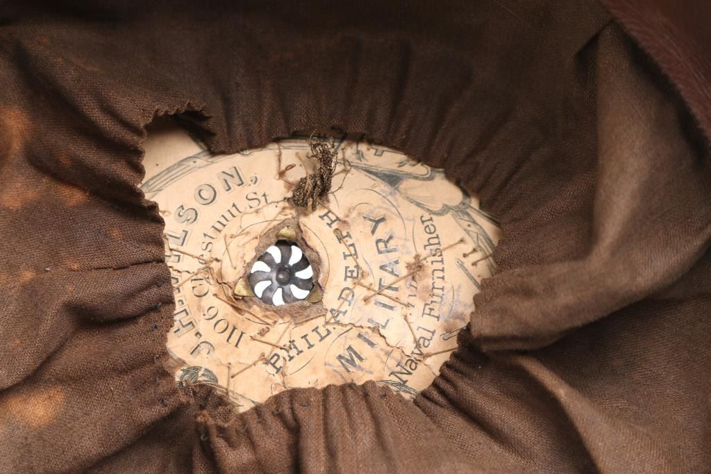 circa Indian War period, cloth lined with original label J.H. Wilson, Moth damage on crown, no chin strap or buttons.