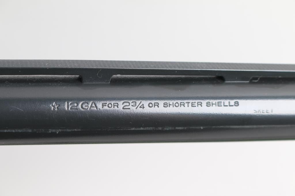 all appear to be for model 1100, not test fitted during inspection. #1) 30" blued barrel, 12 Ga. for 2-3/4" shells, full choke, vent rib with front steel bead sight, excellent and bright bore, very good condition with slight edge wear, retains a 85% blue finish and comes in factory box. #2) 25 5/8" blued barrel, for 2-3/4" or shorter shells, skeet choke, tall trap style vent rib with white Bradley front & white polymer mid bead, good exterior condition with some edge wear, 80% finish, bore is very good and bright.