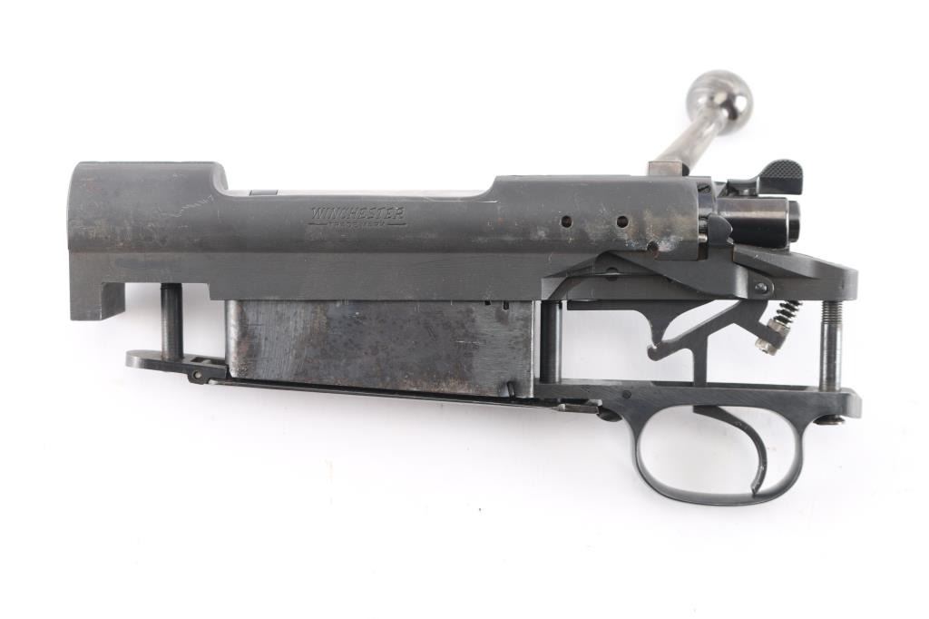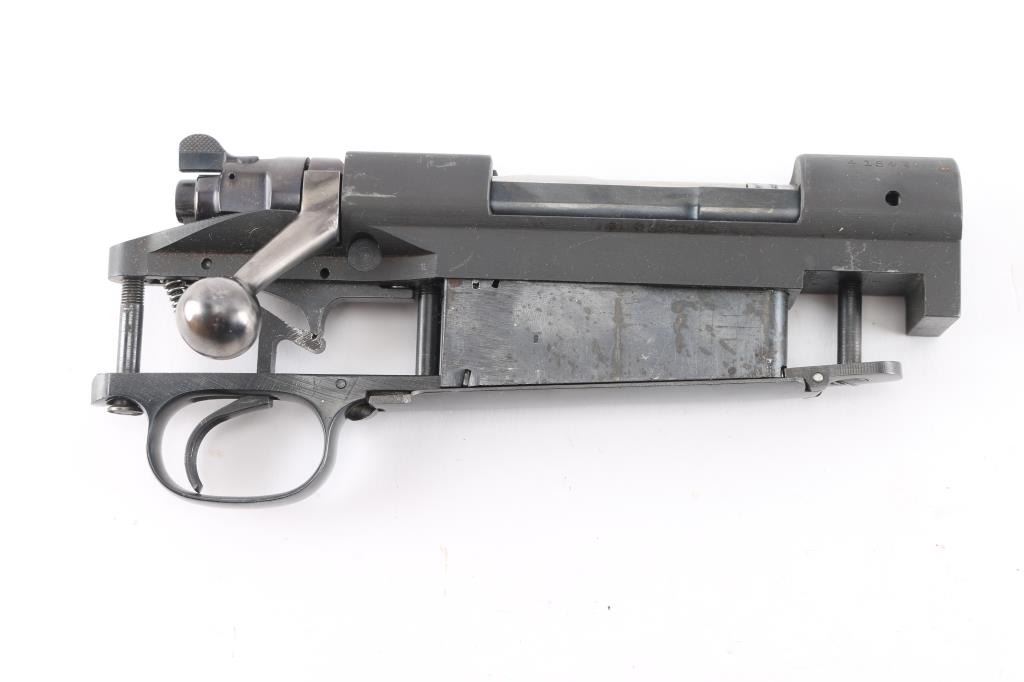 Complete action, no barrel, no stock. Manufactured circa 1941. Controlled round feed. Blued finish, two position side swing safety on bolt shroud. Standard bolt face. Drilled & tapped on top for scope bases. Probably reblued, shows few scratches, approx 95% coverage.
