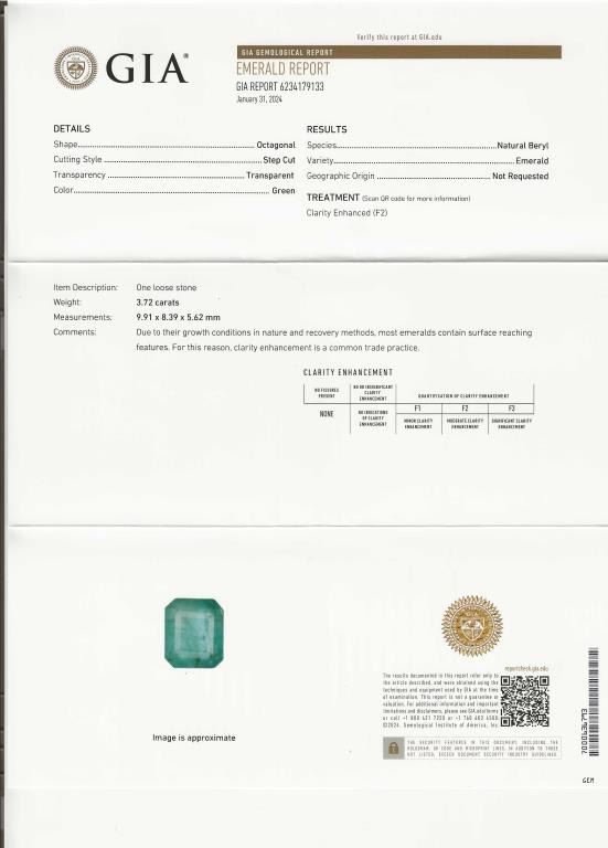 Lot 1211a Loose G.I.A. Certified 3.72 carat Octagonal