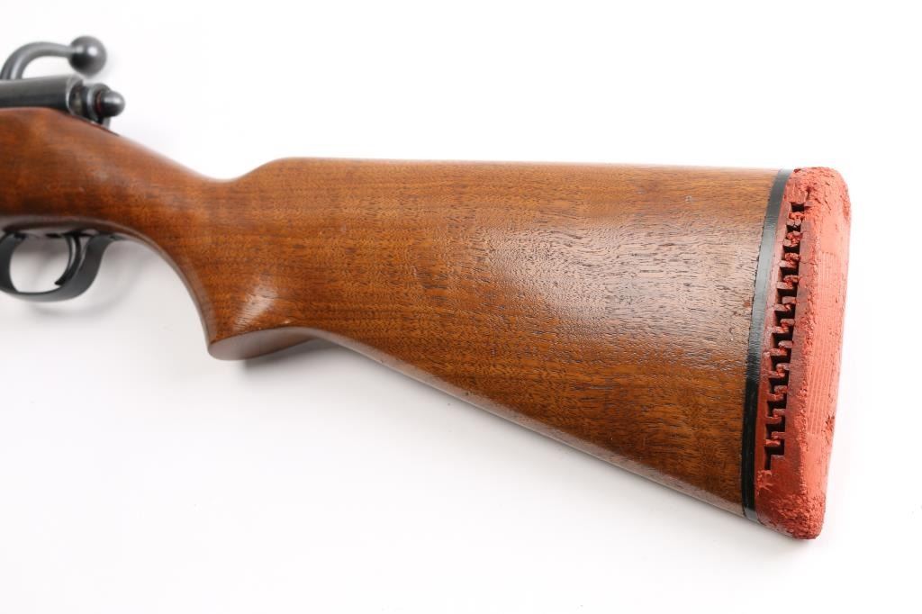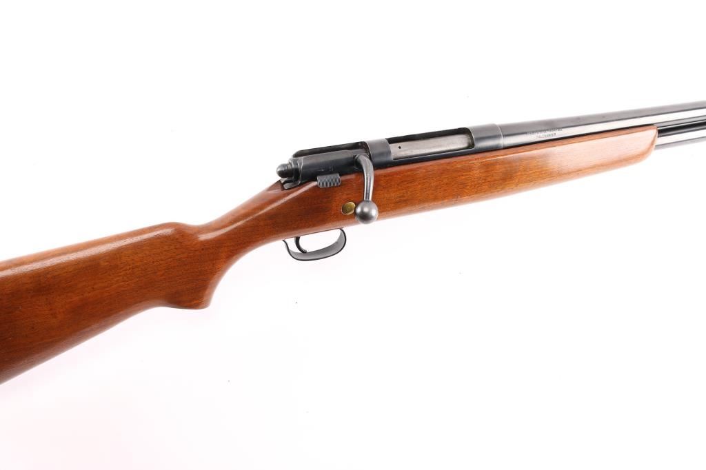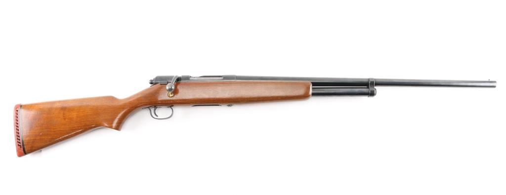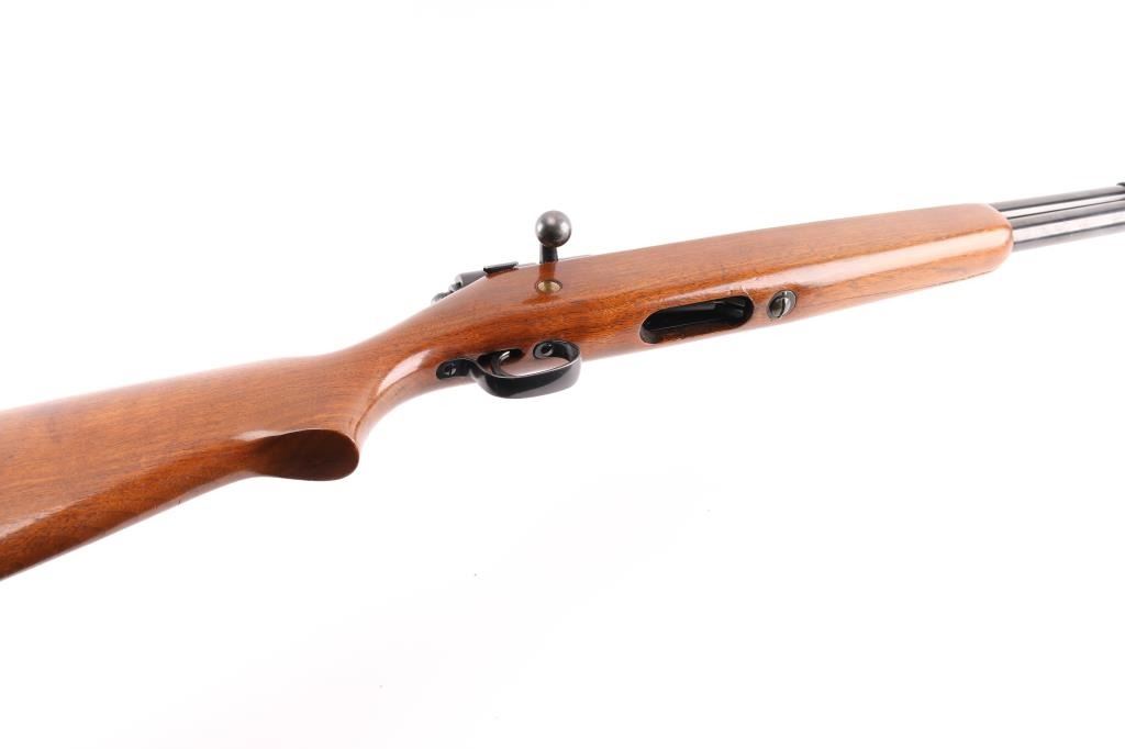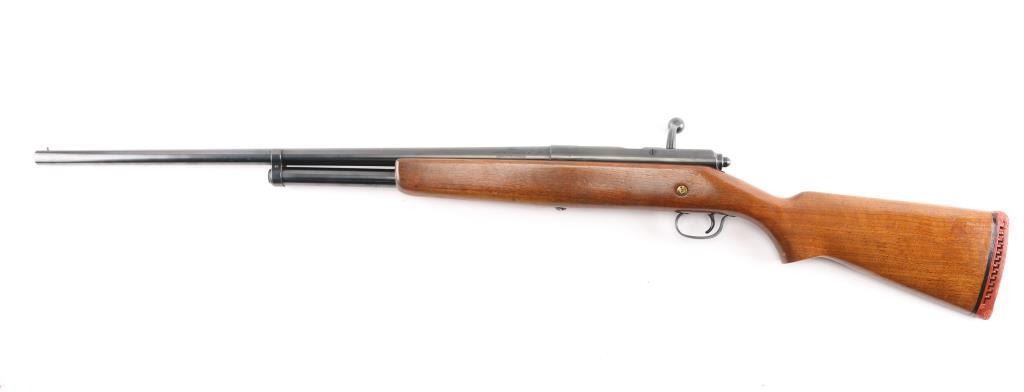 Vintage Trade Name bolt action shotgun sold by Sears Roebuck & Co. Features 28" Full chock barrel, bead front sight, 2 3/4" chamber, tube magazine under barrel, smooth wood stock with semi-pistol grip, vented rubber recoil pad, manual thumb safety. Bore appears very good, a little dirty. blued finish is about 98% with some very minor scratches. Wood is in very good with minor scratches/dings. Recoil pad is hard. Bolt action is smooth. LOP is 13 3/4". There is a long crack on the underside of the forend.