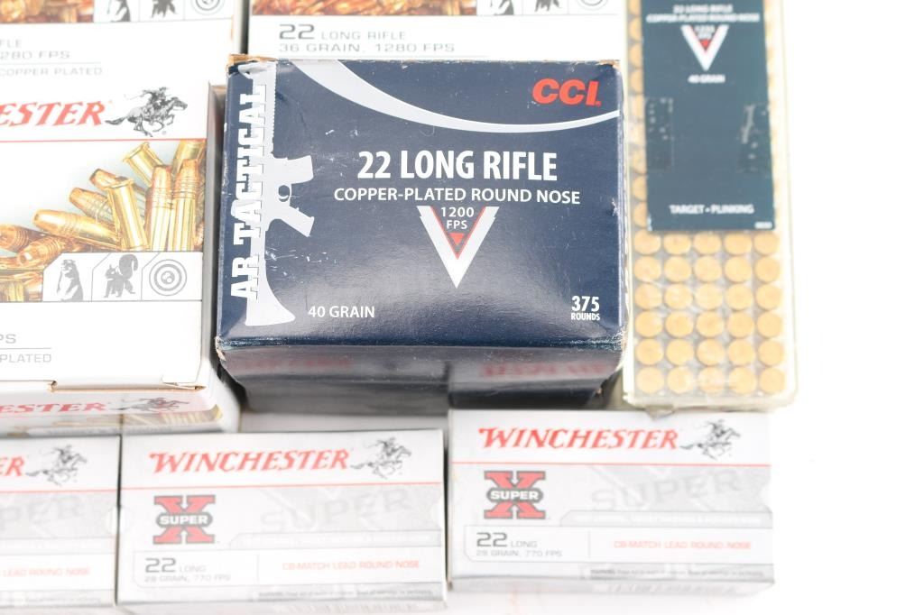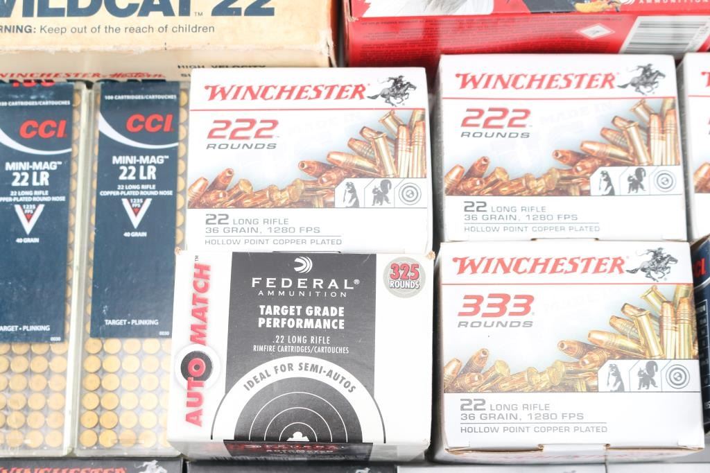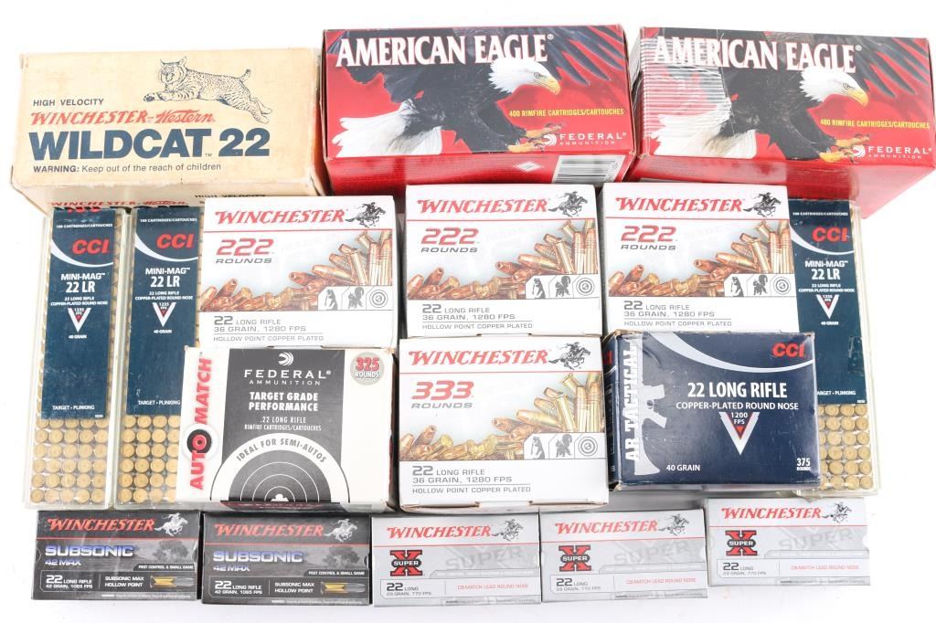 Approx. 3,429 rounds of .22 Long Rifle factory new ammunition. American Eagle, Federal, Winchester & other brands. Various types of load. All in factory boxes.