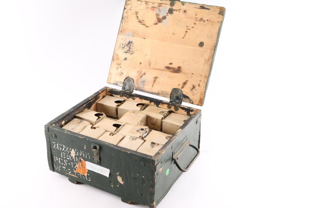 Approx. 690 rounds of 7.65 X 54mm ammunition. Possible made in Turkey or Argentina. In boxes of 15, all in wooden crate w/Arabic writing.