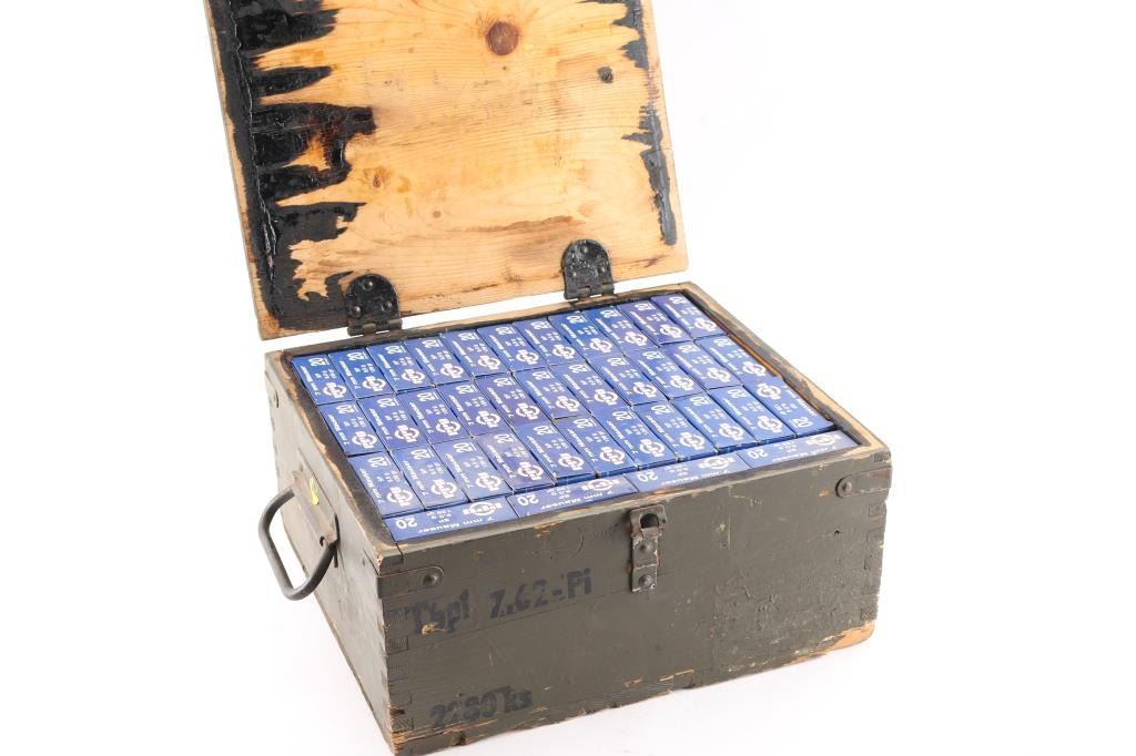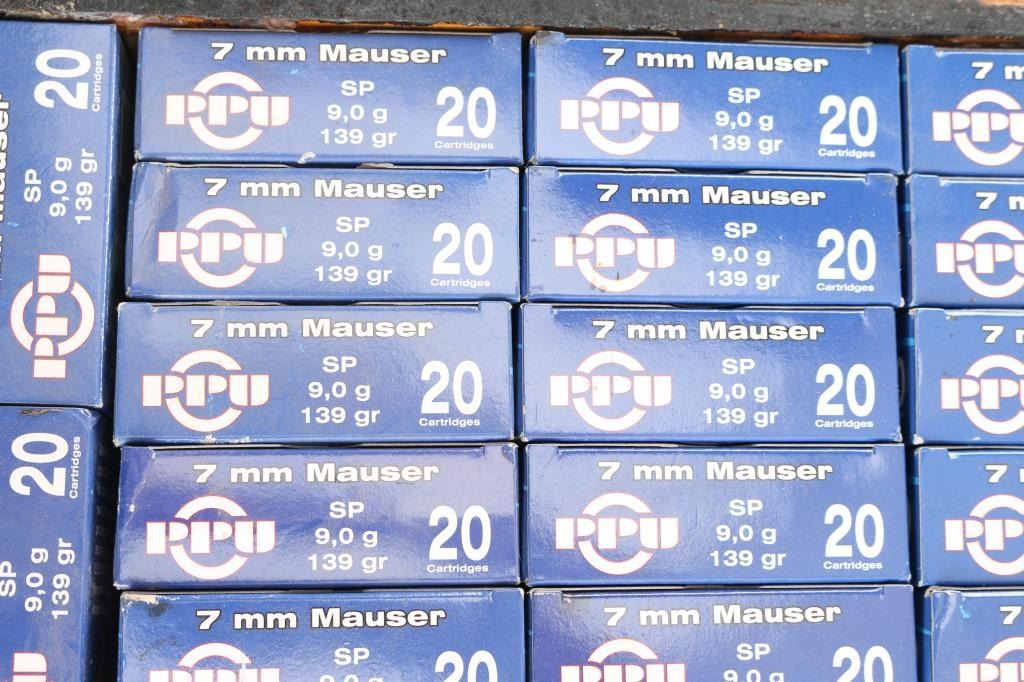 Approx. 740 rounds of 7mm Mauser factory new ammunition. 139 Gr. Soft Point, made by PPU. 20 rd boxes all in wooden crate. Approx. 46 LBS.