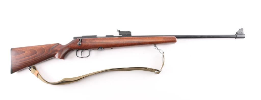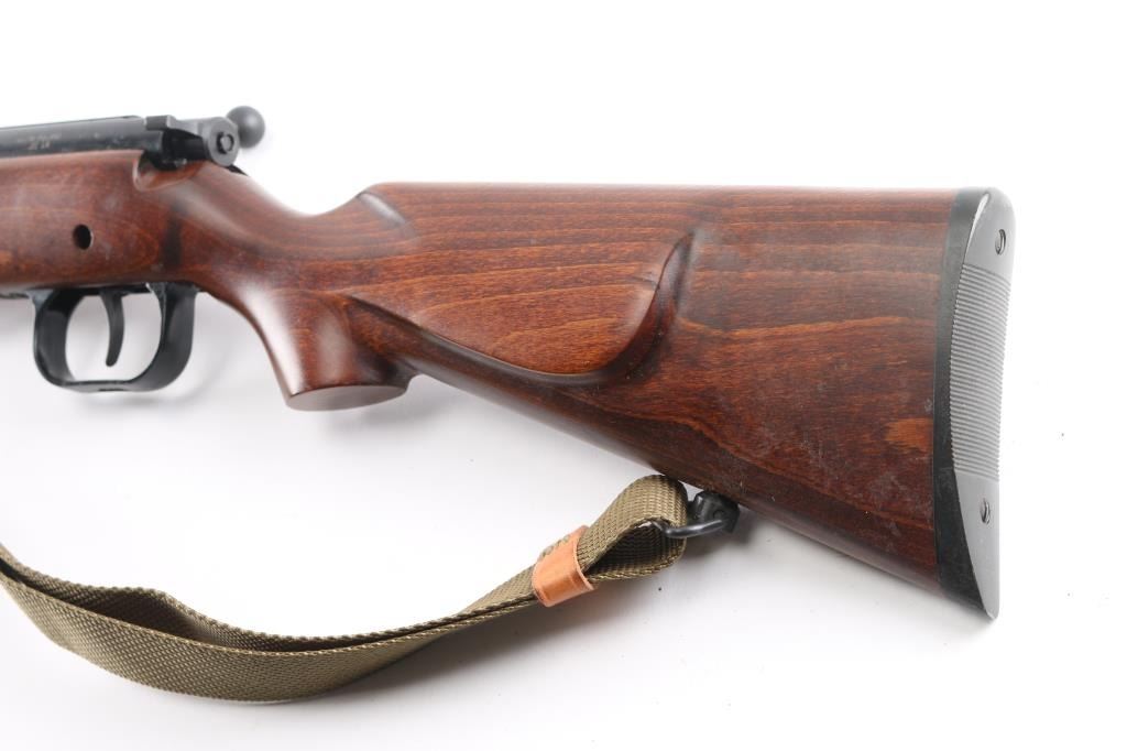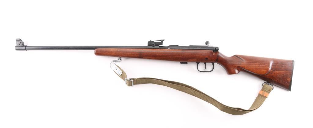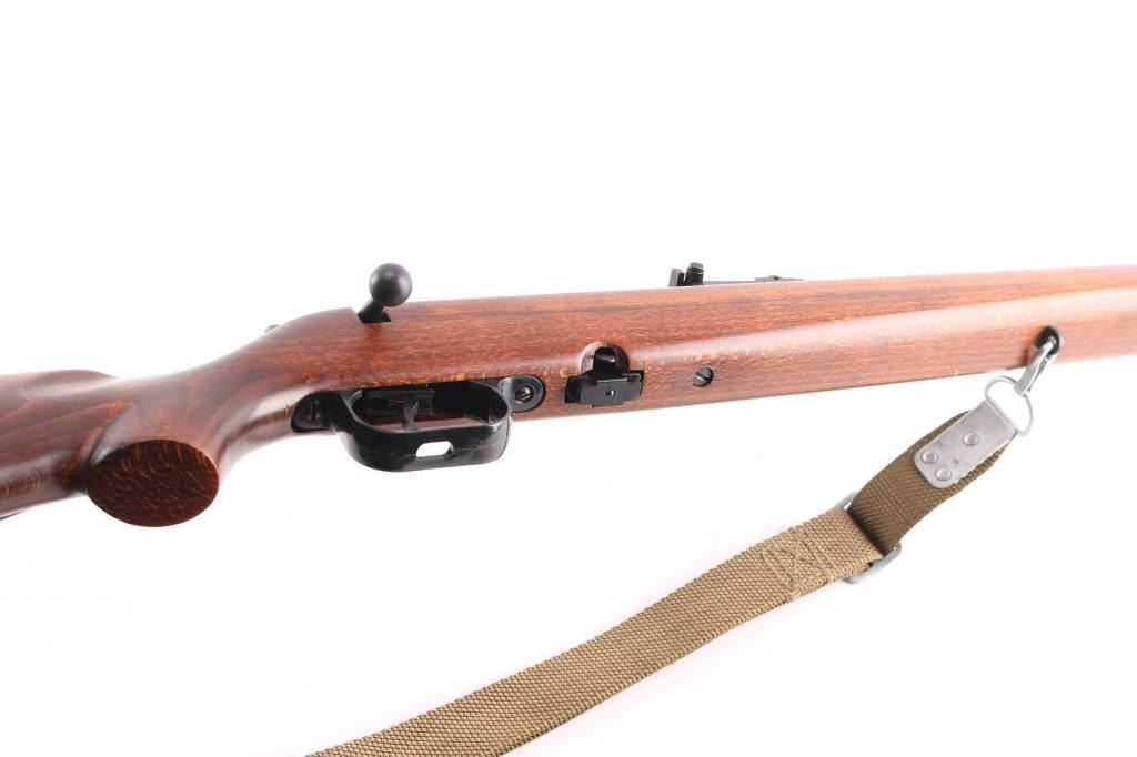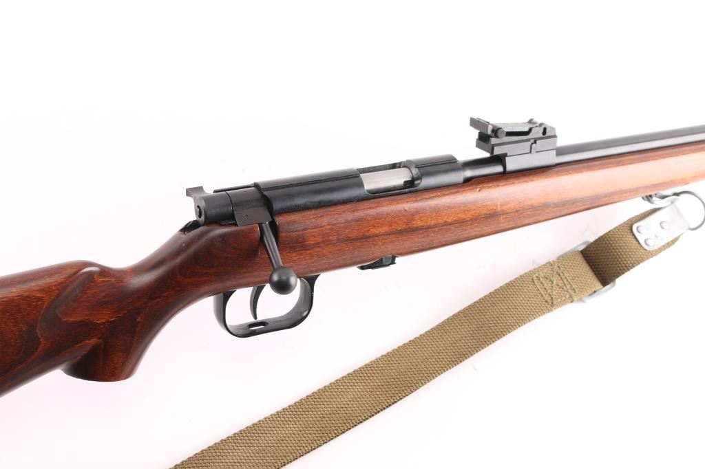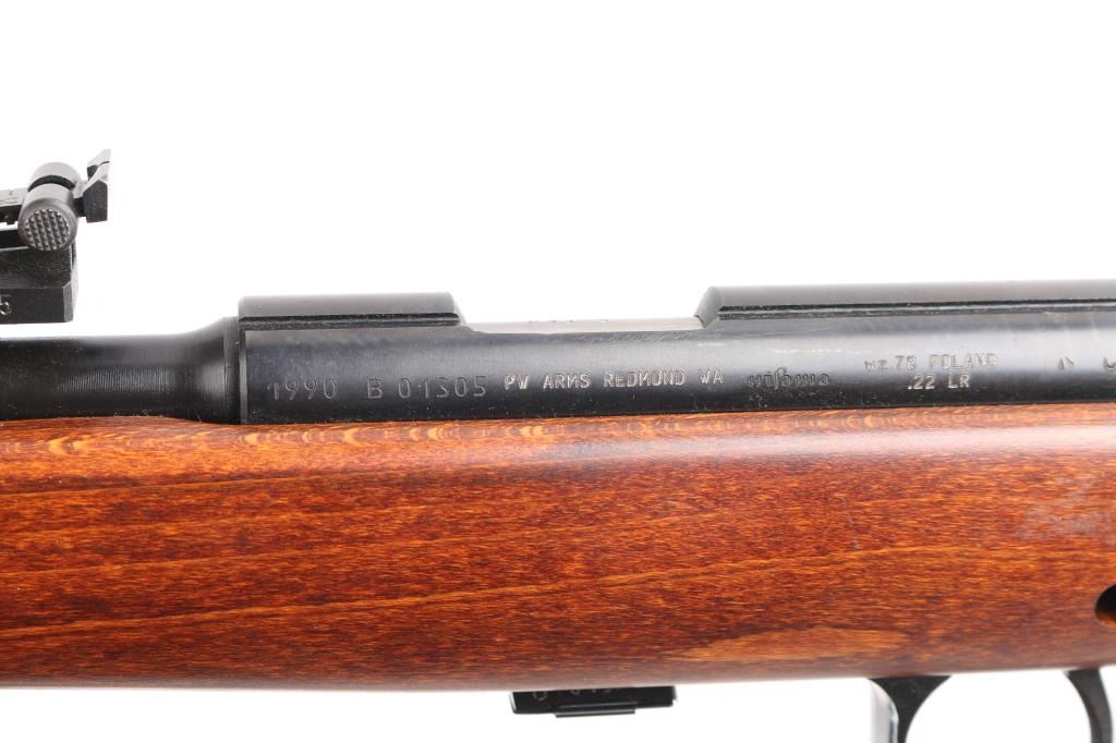 Polish military training bolt action right hand 22LR target rifle, Imported by PW ARMS Redmond WA , marked on left receiver Blued finish, Target open sights Numbered to gun,matching bolt, dated 1990.Magazine has matching SN etched on the side, adjustable trigger ,Plane wood stock with cheek rest, 26" barrel. Bore is excellent ,action is smooth, Receiver is milled for scope rings, blue finish is about 98%, wood stock is near excellent with a couple of minor scratches. Comes with correct Polish military sling.