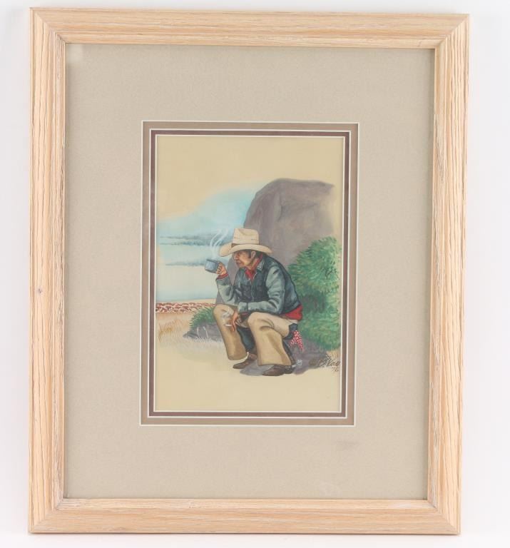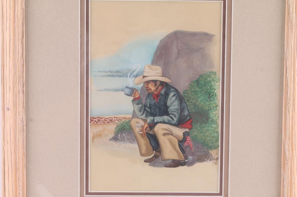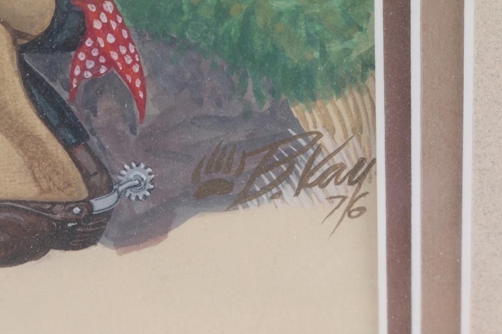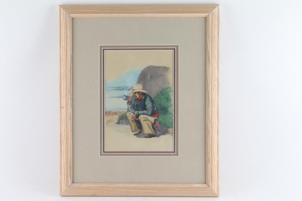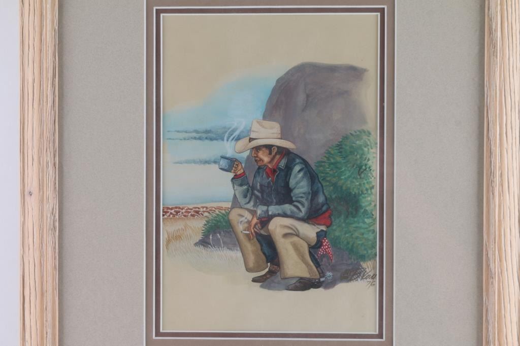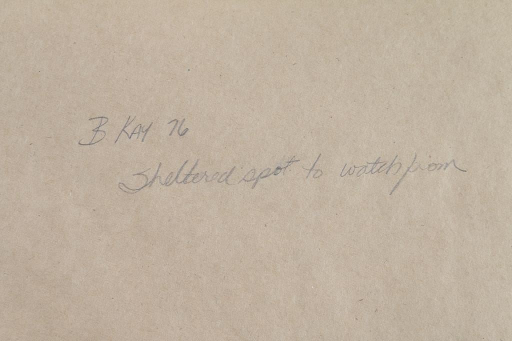 by B. Kay, entitled "Sheltered Spot", image size is 9 1/2 x 6 1/2. Doubled matted and framed.