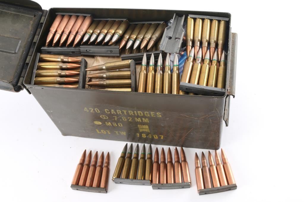 Approx. 36 Lbs of 7.62 NATO factory new ammunition. Factory surplus w/ some on clips, some in zip lock & some wrapped in paper.