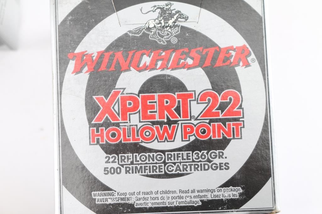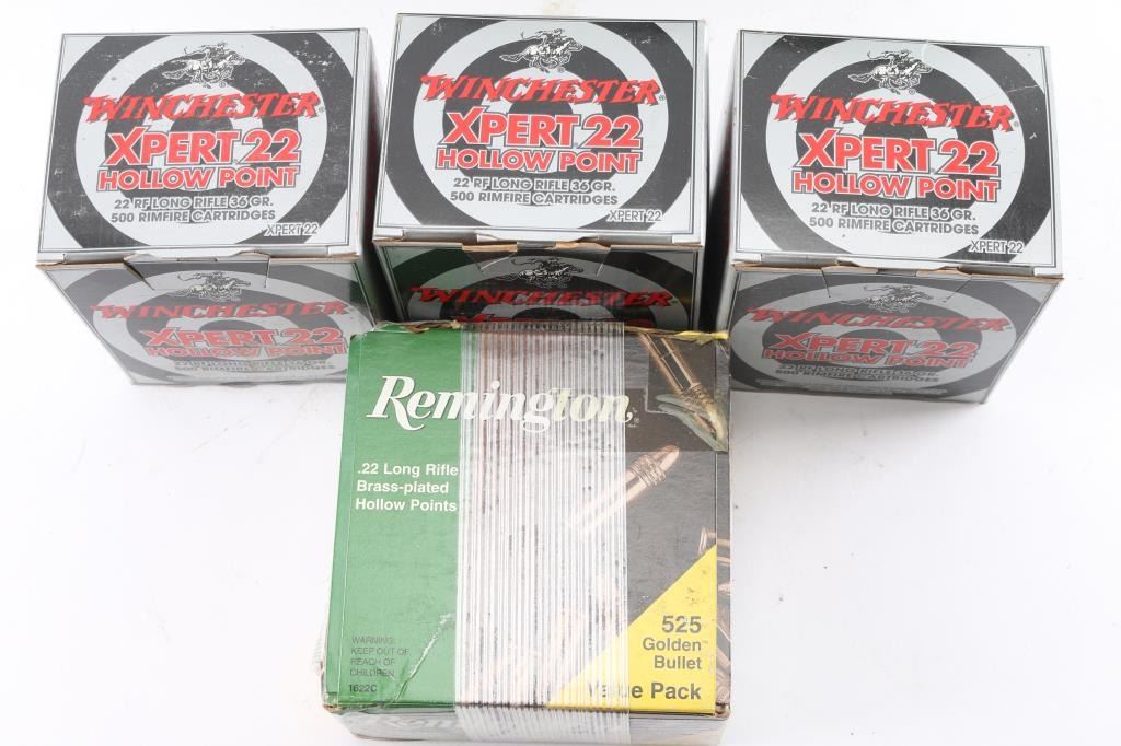 Approx. 2,000 rounds of .22 Long Rifle factory new ammunition. 1500 rds of Winchester 36 Gr. HP & 500 rds of Remington HP. In factory boxes all in metal ammo can.