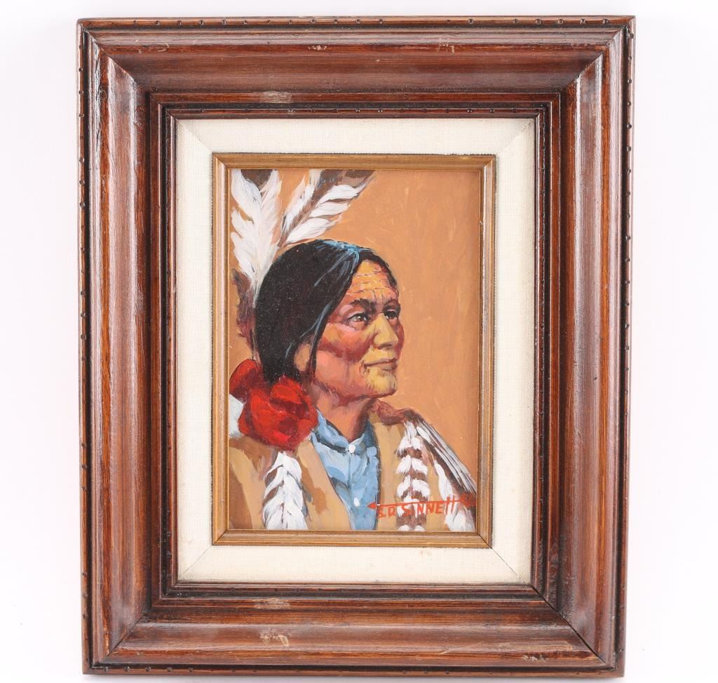 Lot 1534 Original Acrylic on Board of Indian Chief