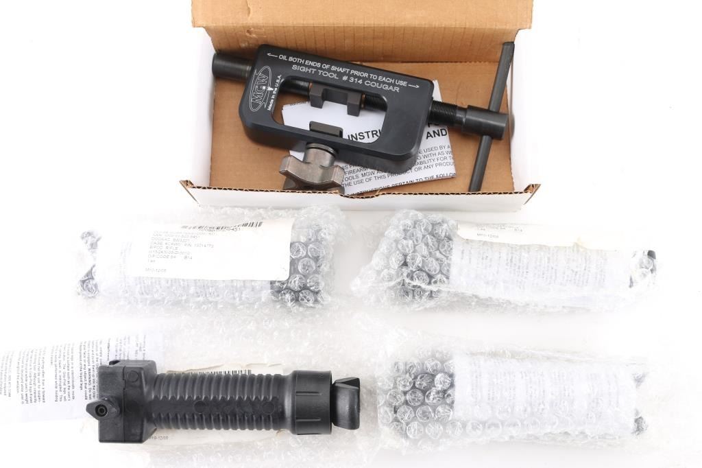 Maryland Gun Works- MGW Armory rear sight pusher tool, used very little. Very good condition. & four GPS vertical grip/bi-pod combo Grip Pod System - military grade vertical quick grip deploy bipod. Black polymer bipod retracts into handle.