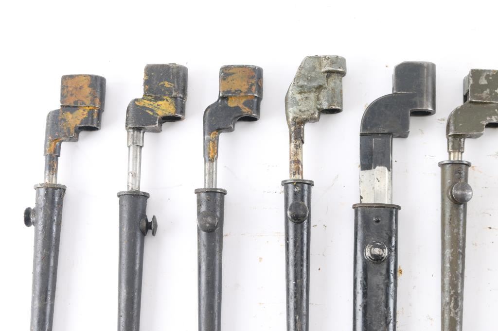 Six total. Includes 5 Enfield No.4 Spike bayonets with steel scabbards, and 1 No. 9 Mk I blade bayonet, dated 1954, serial number matched to scabbard. All have dried cosmoline from storage,