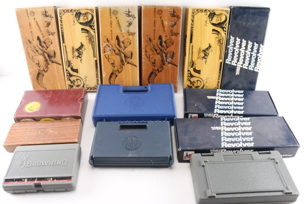 Total of 17. All factory boxes, plastic & cardboard. Beretta, Colt & many others. Some w/manuals, cleaning kits & extras.