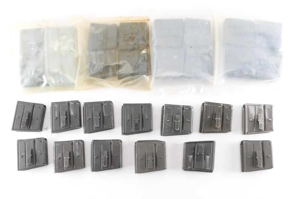 Includes thirteen OEM 10 round magazines - steel construction with a parkerized finish, varying conditions.