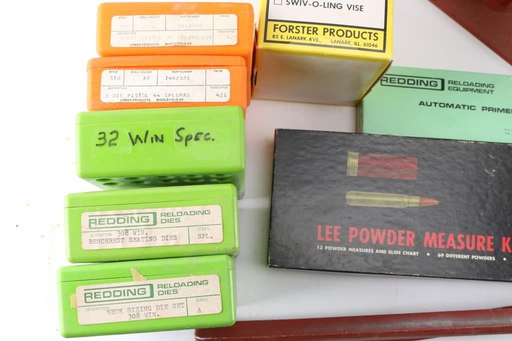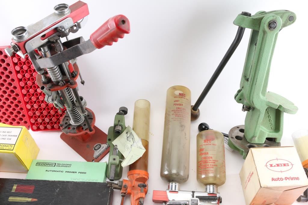 Includes: 1 - MEC press model 650 with multiple dies and tools, 1 - Redding rotary press with dies and tools.
