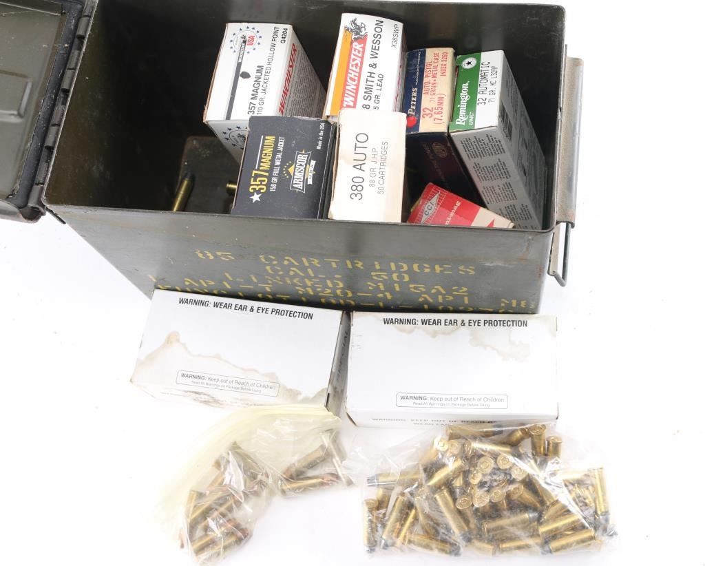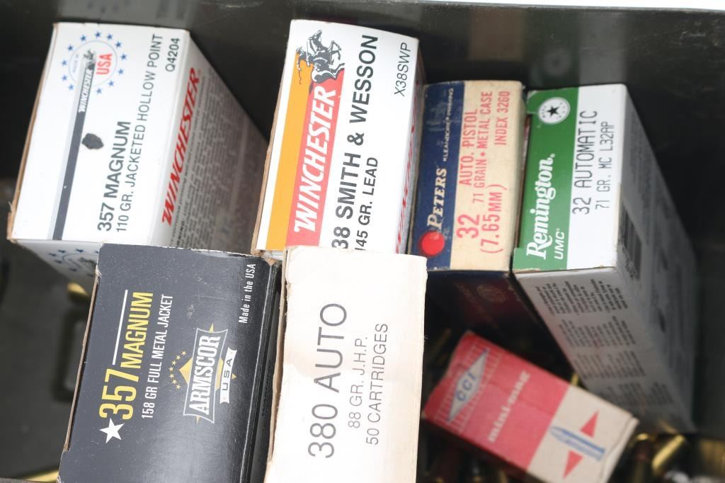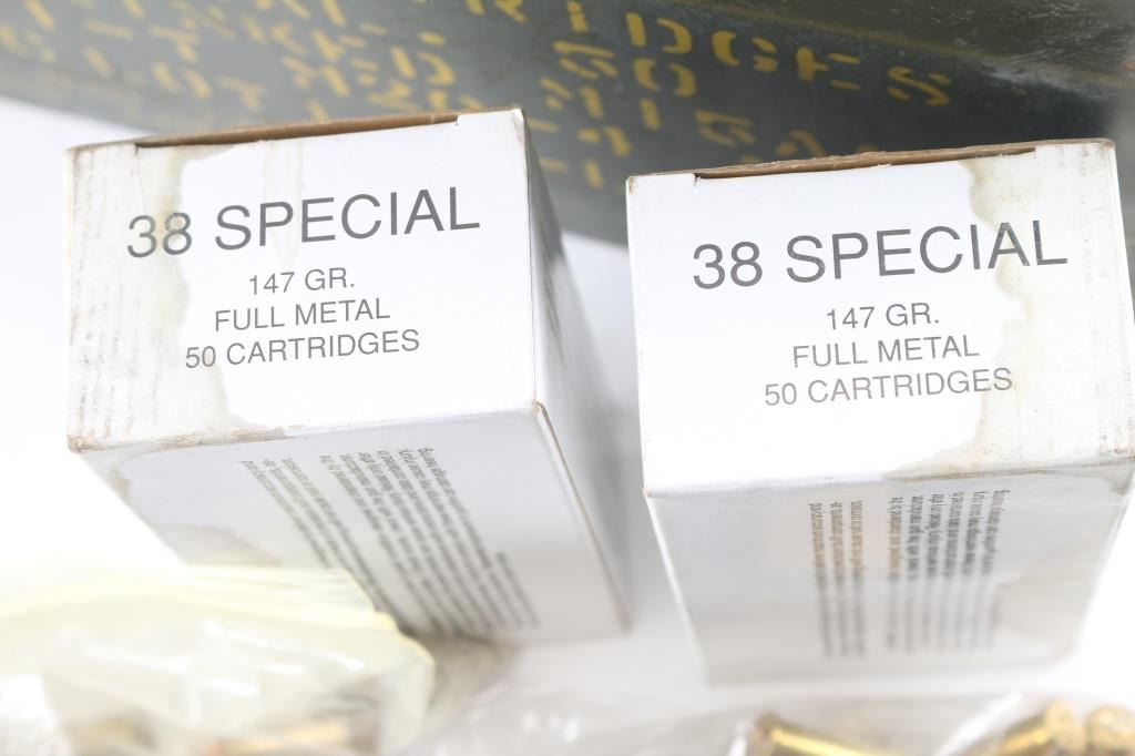 Approx. 620 rounds of 38 Special, 357 Magnum & other factory ammunition. Mostly lead bullet, some copper FMJ and others. In plastic Zip lock bags and factory boxes. All in 2 metal ammo cans.