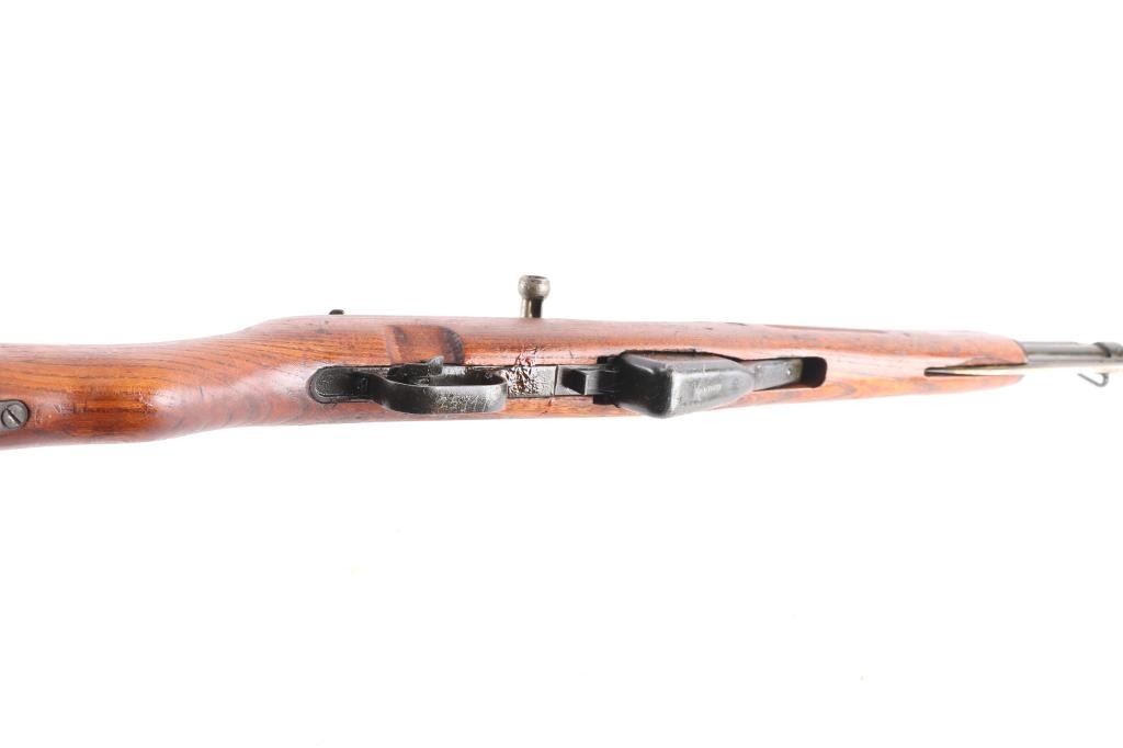 Zastava M59 PAP, also known as Papovka, is a Yugoslav licensed version of Soviet SKS semi-automatic rifle.'Mdl 59' Yugoslavian made gas-operated semi automatic rifle chambered in 7.62x39mm. Imported by CAI, right barrel. Features a blued finish, 20.5" barrel, hooded post front sight, tangent rear sight graduated to1,000 meters, cleaning rod, folding blade bayonet, manual safety, smooth trigger, fixed 10 round magazine, smooth wood handguard, pistol grip shoulder stock and trapdoor metal buttplate. Rifle has a heavy coat of cosmoline from storage, bolt carrier is locked to the rear, stuck due to dried cosmoline, needs cleaning. Serial number matches on the receiver, bolt carrier, triggerguard, and stock. Rifle retains approximately 98% of it's blued finish, with slight edge wear, bore appears rough, frosting in the grooves, strong rifling, may improve with cleaning, and wood stocks are very good. Serial numbers puts it at pre 1967,