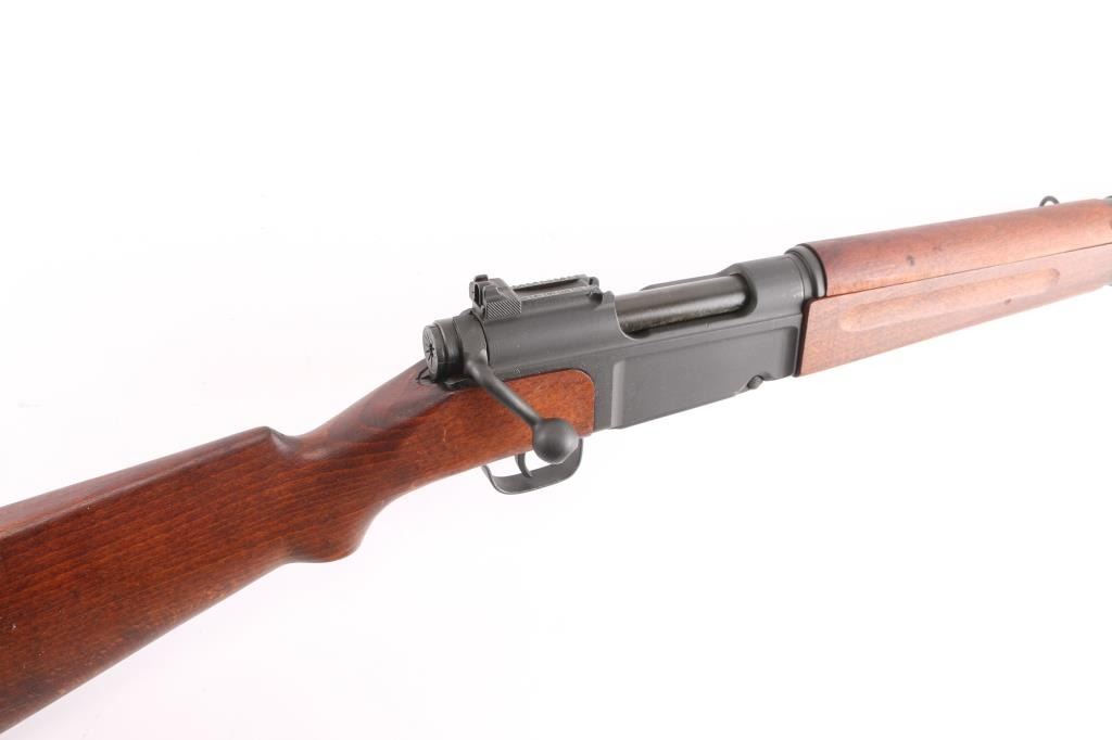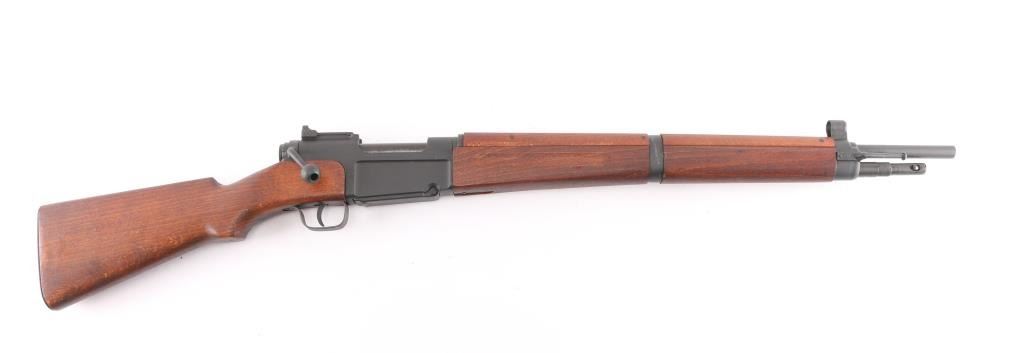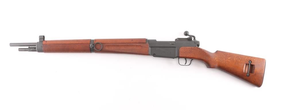 French military semi-automatic service rifle chambered in 7.5x54mm, manufactured circa 1937-1952. Imported by CAI Vermont, very feint markings on left receiver. Features: parkerized finish, 22.5" barrel, spike bayonet, stacking hook, hooded blade front sight, receiver mounted peep rear sight with tangent elevation slide, 'dog leg' bolt, smooth wood handguard & forend, and pistol grip shoulder stock. Bore appears excellent/bright, strong rifling, Parkerized finish is excellent, wood is excellent, action is smooth. CAI import marks on left receiver. NRA Condition-Excellent. C&R firearm.