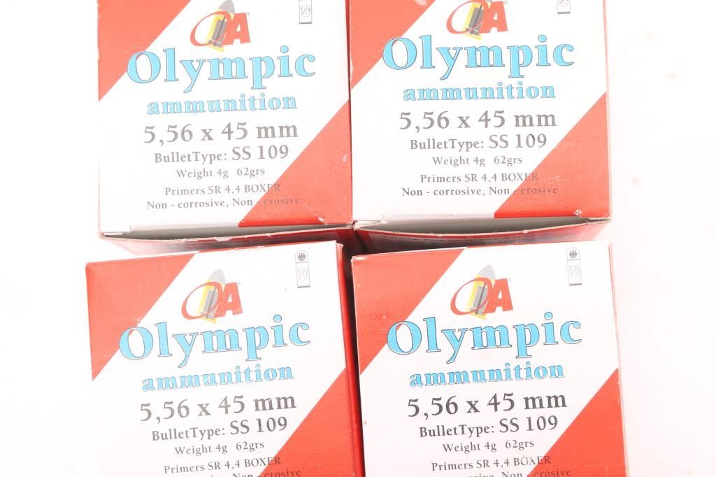 Approx 295 rds Olympic SS109 and approx 355 rds FNM mod 369 (also appears to be SS109 type). Several boxes appear to be missing a few rounds.