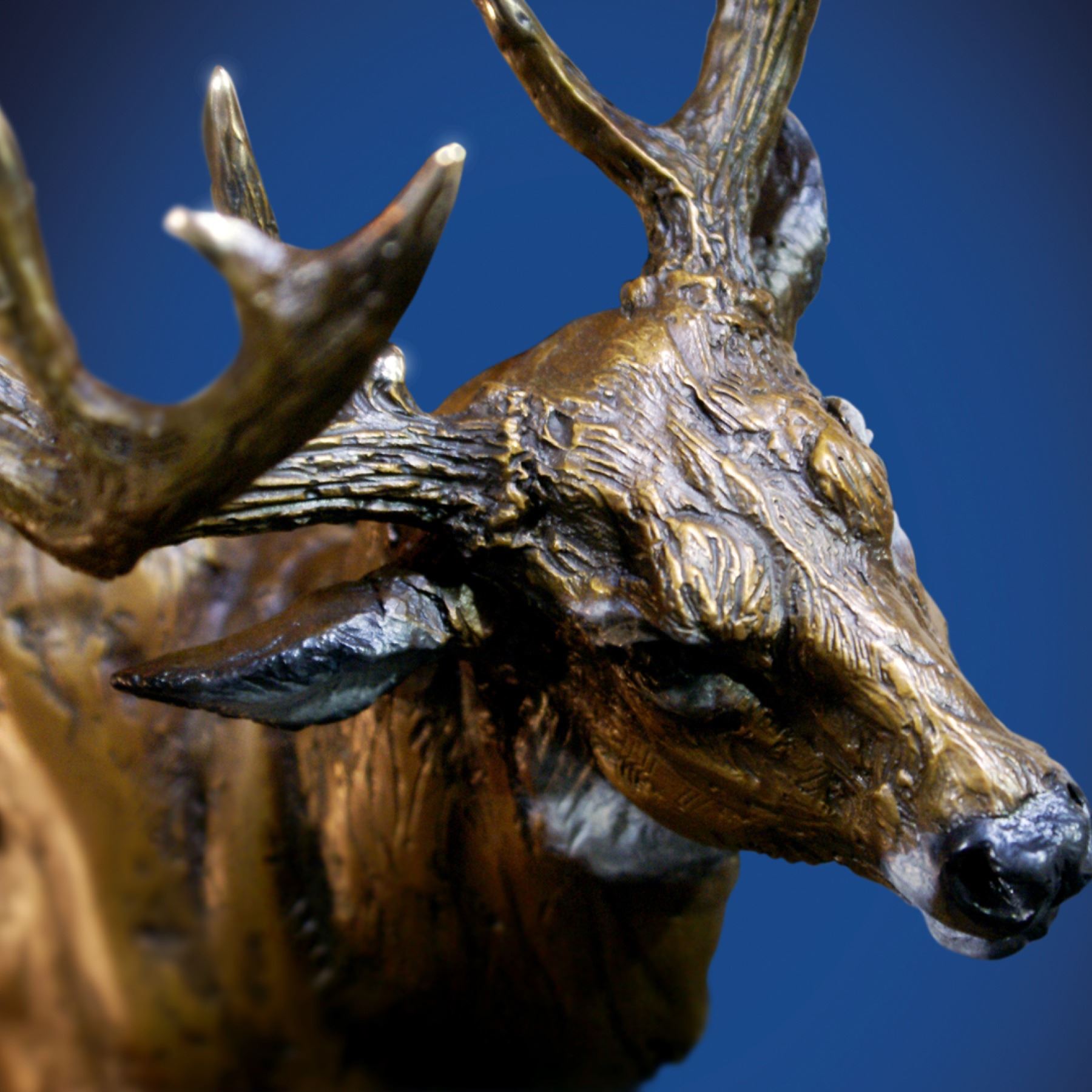 Treasure Investments is proud to present the masterpieces of the renowned and prolific artist, Lorenzo Ghiglieri. Lorenzo noticed a buck one day out on his property and sat and watched it for a time. He saw the elegance and knew that he had to re-create this moment, but needed the perfect instance. The buck was done with the area and as Lorenzo watched him leave, the buck leapt over a fallen tree, and Lorenzo knew he had caught the perfect moment