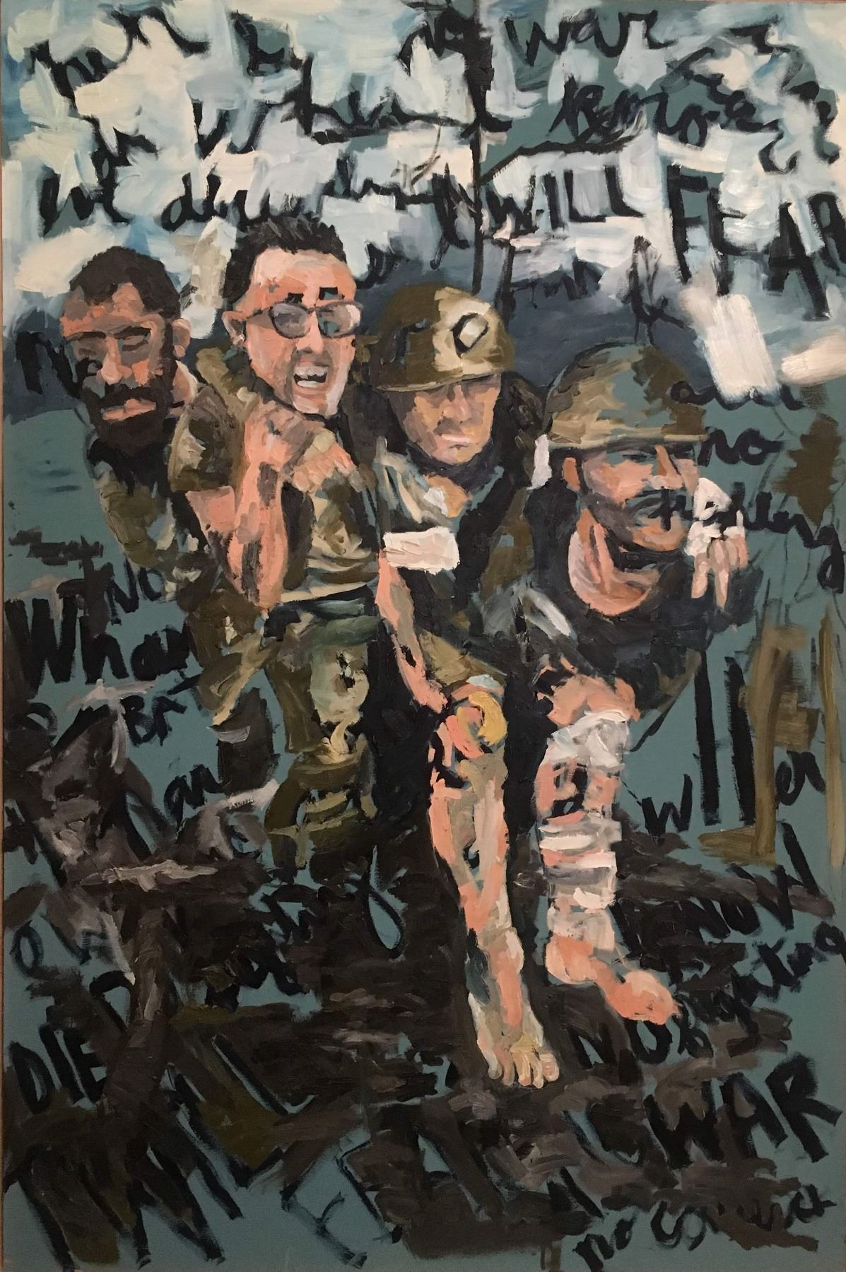 Across two and a half years, Evelyn created large scale oil paintings on wood, combining text and imagery to convey the plight of those who fought in Vietnam.