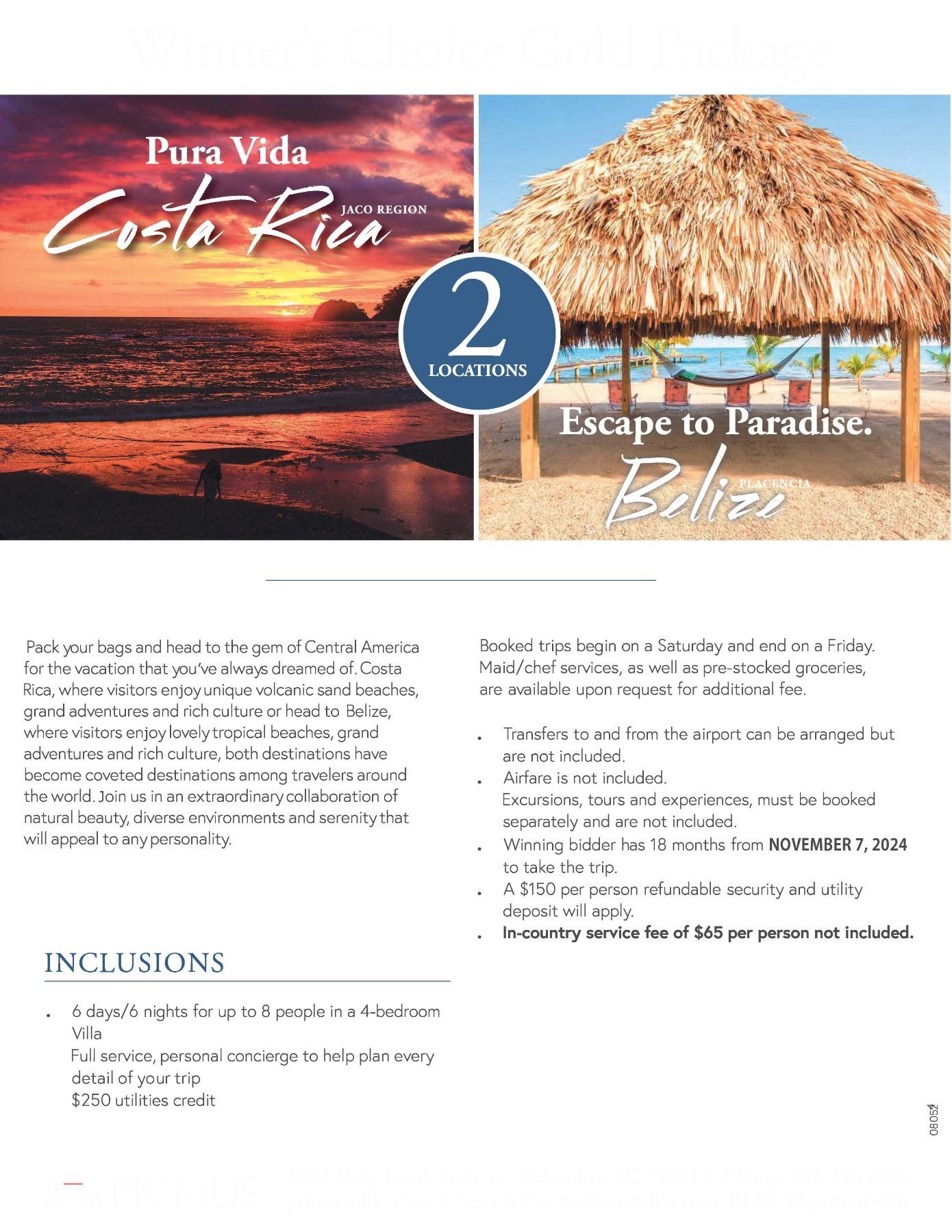 We are also offering six days/Six nights in a dream vacation villa for up to EIGHT people through Primus Villas in the Jaco Region of Costa Rica.