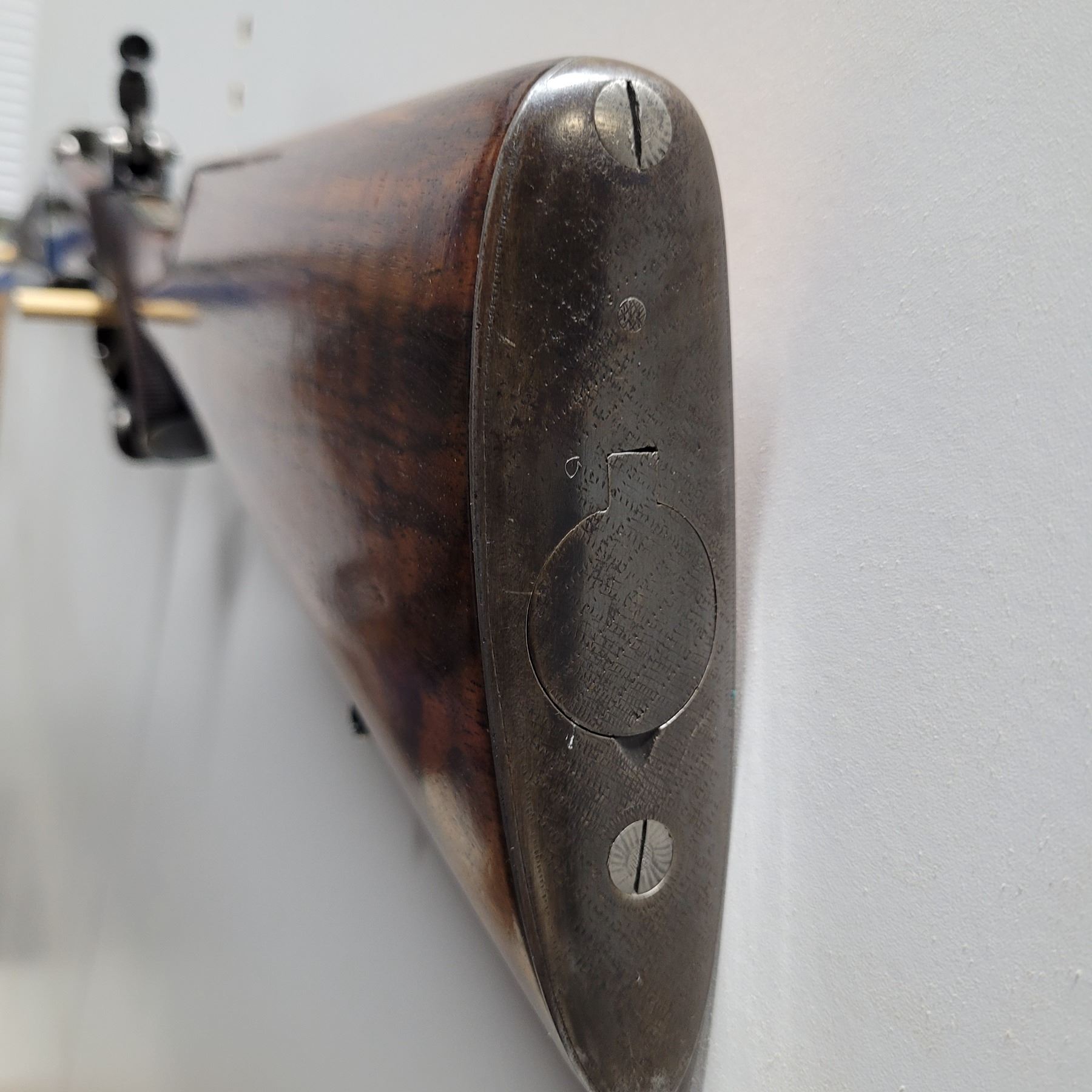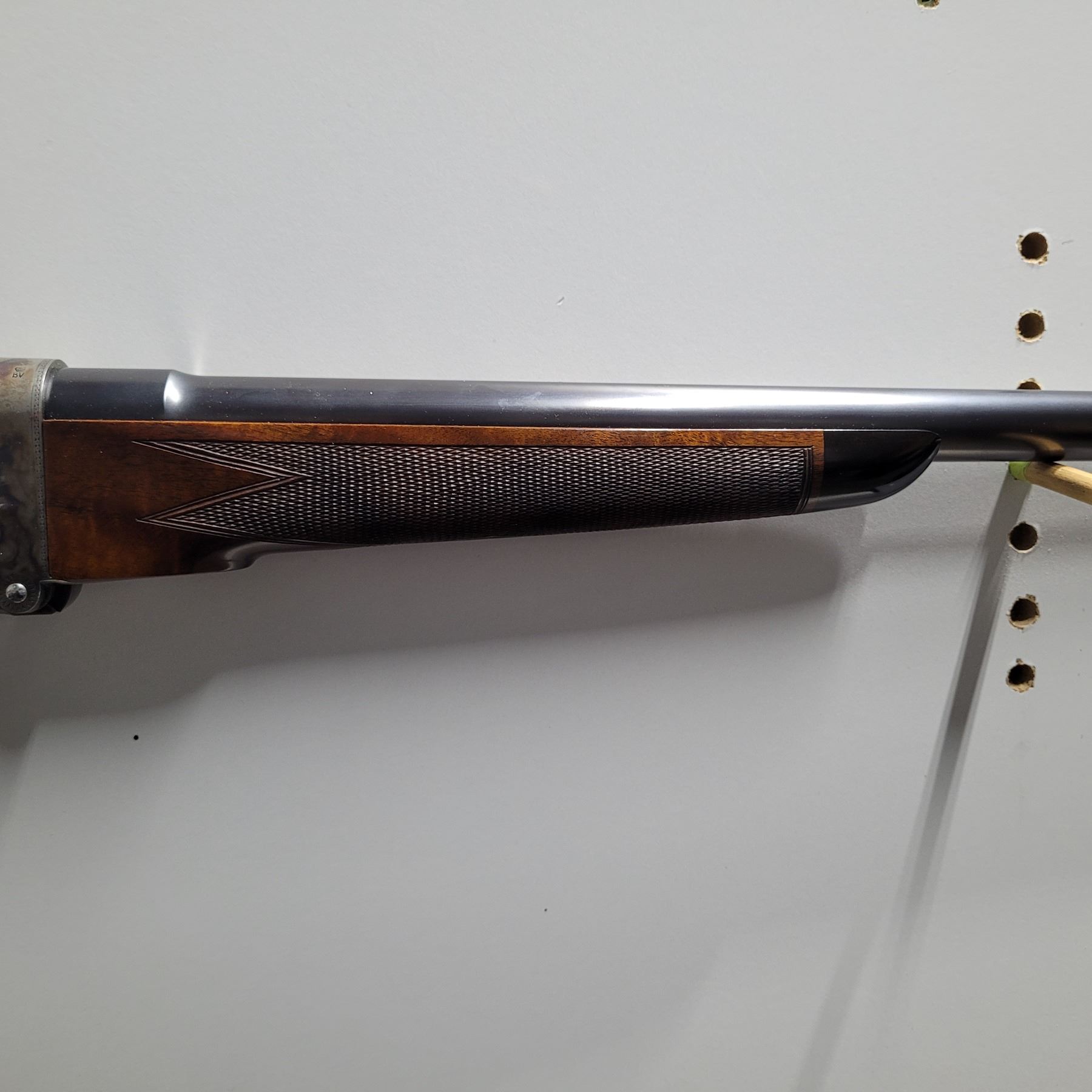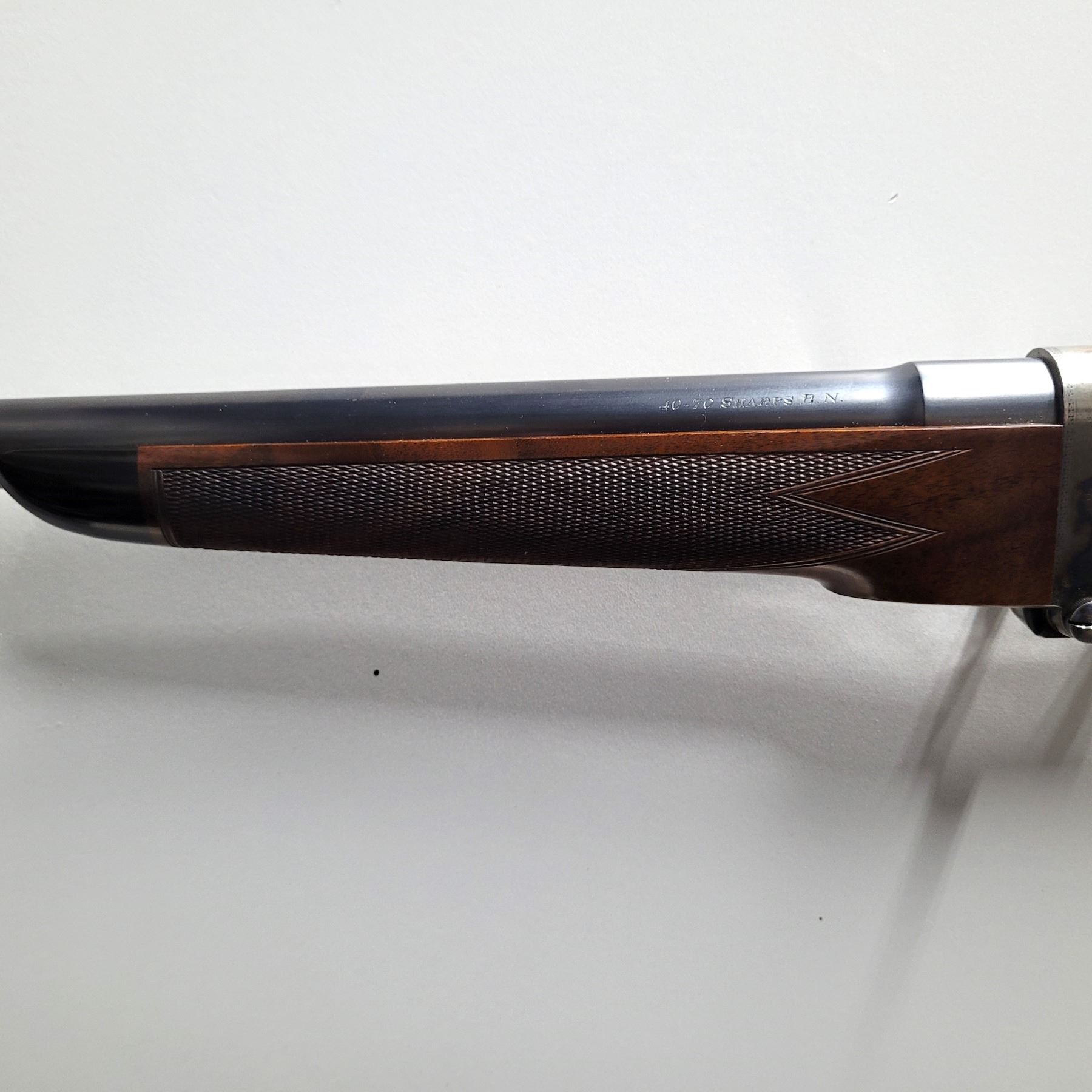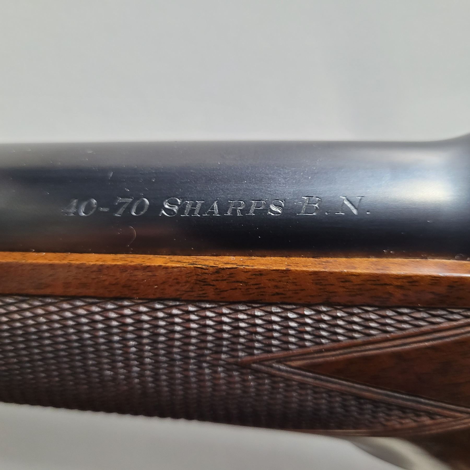 Used W.J. Jeffrey Farquharson re-barreled to 40/70 Sharps Bottle Neck caliber Custom Single Shot Target Rifle. This rifle has a 29" barrel in excellent condition, both inside and out. The rust bluing is in very good condition. The beautiful figured stock and checkering is in excellent condition. The color case hardening is brilliant. Overall, an excellent condition custom rifle.