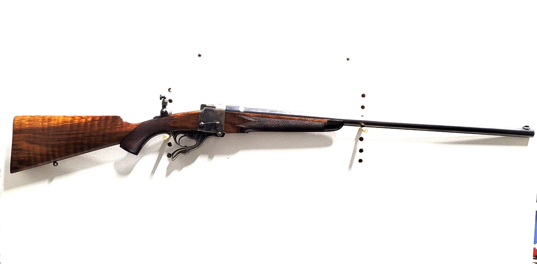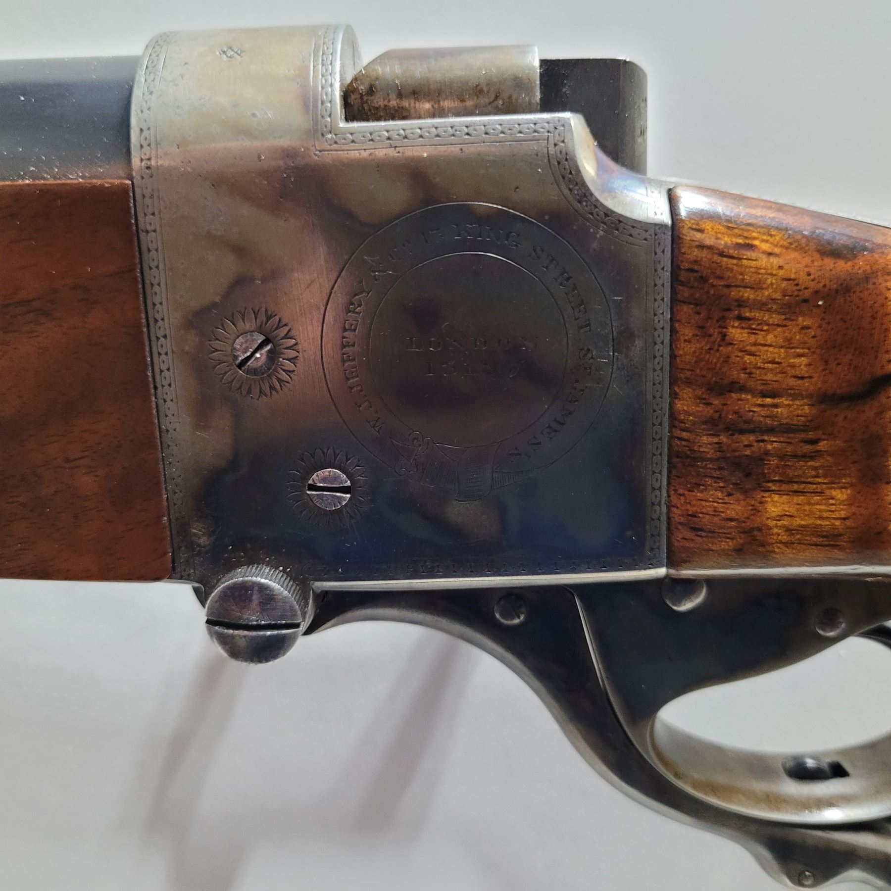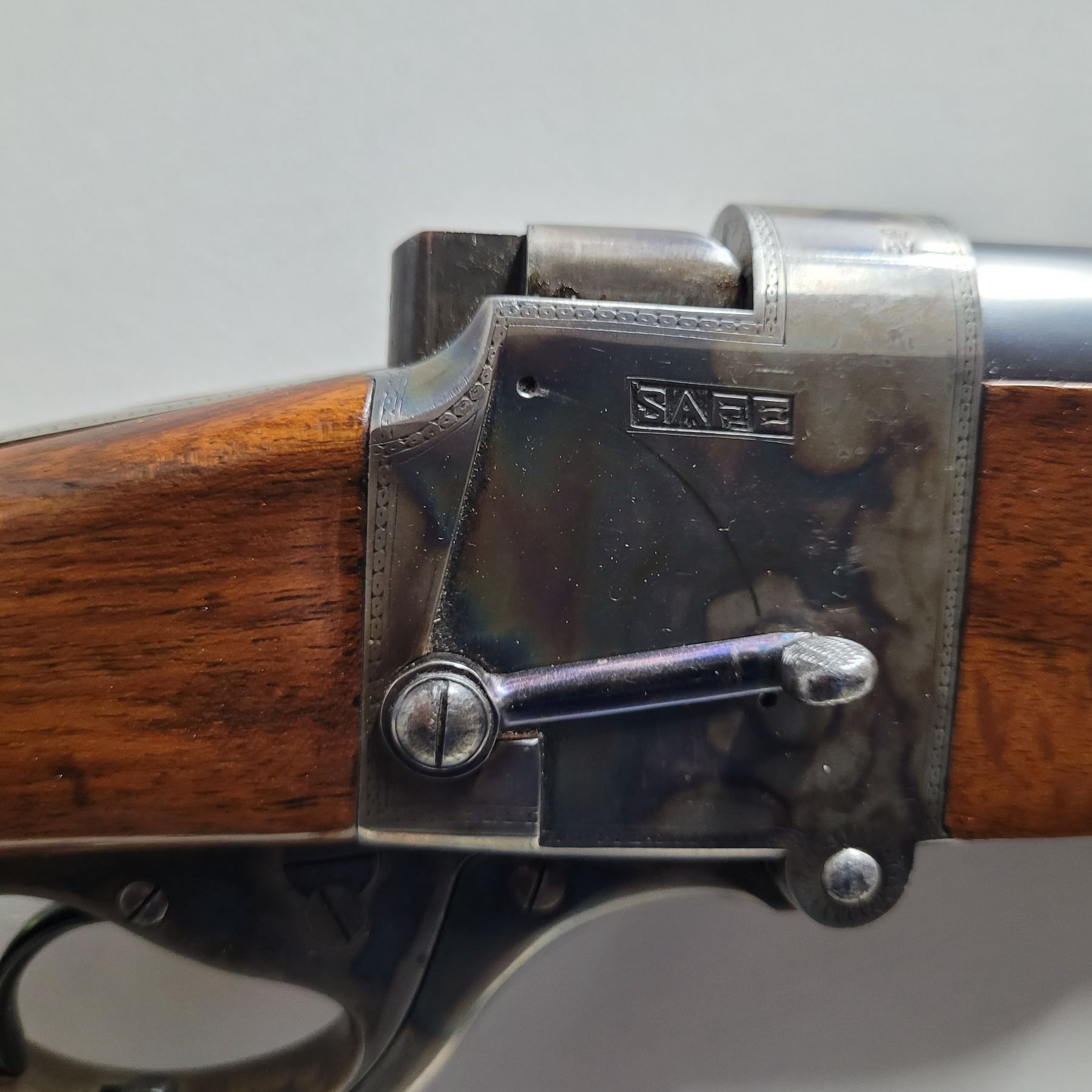 Used W.J. Jeffrey Farquharson re-barreled to 40/70 Sharps Bottle Neck caliber Custom Single Shot Target Rifle. This rifle has a 29" barrel in excellent condition, both inside and out. The rust bluing is in very good condition. The beautiful figured stock and checkering is in excellent condition. The color case hardening is brilliant. Overall, an excellent condition custom rifle.