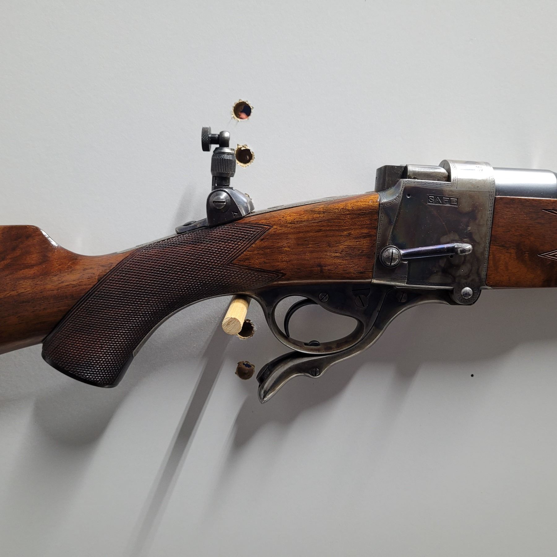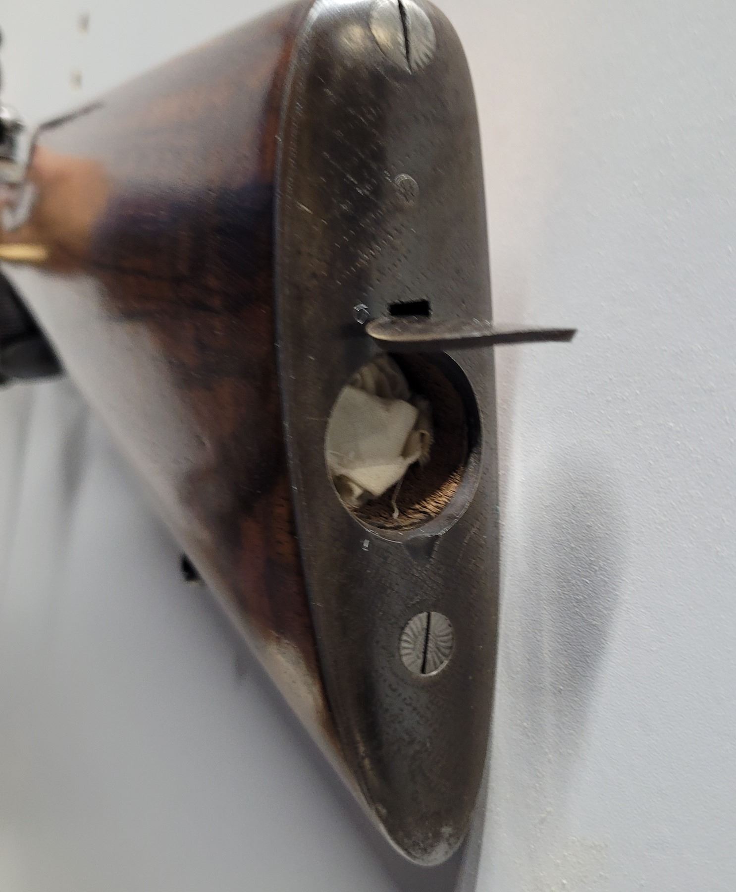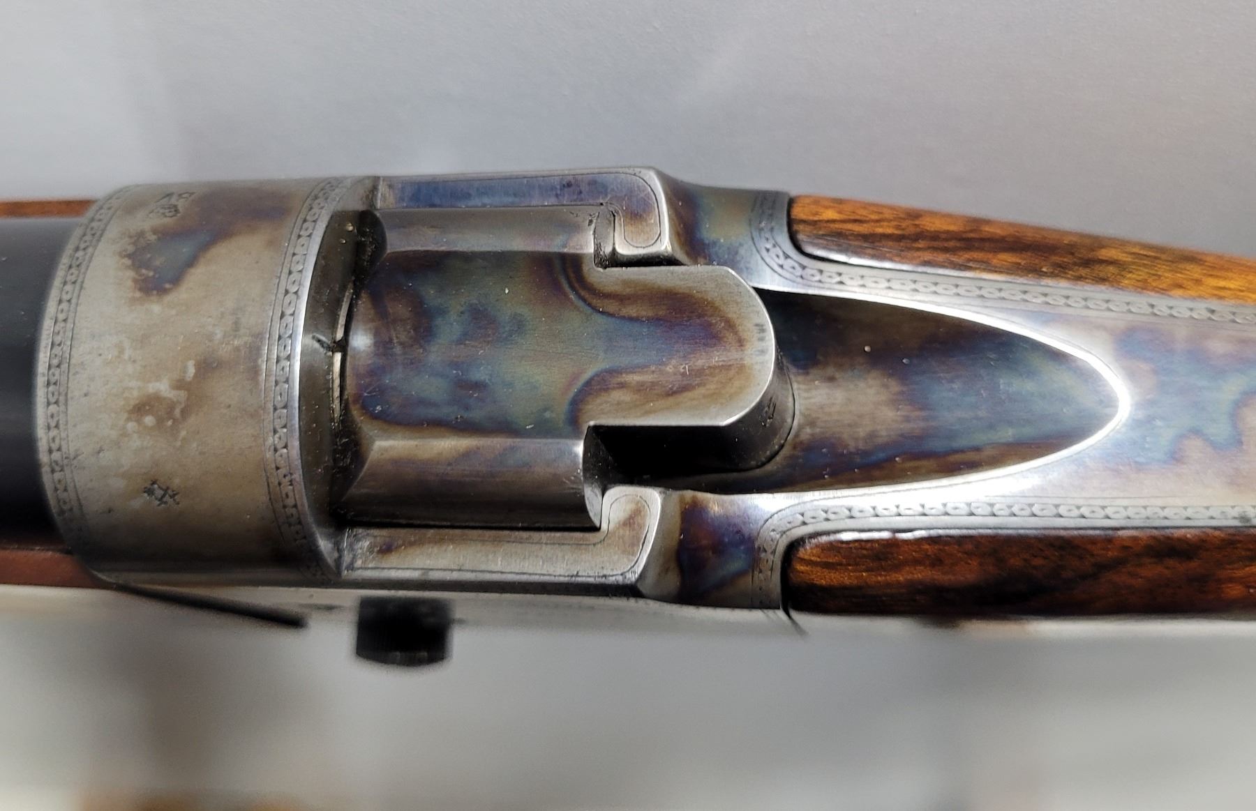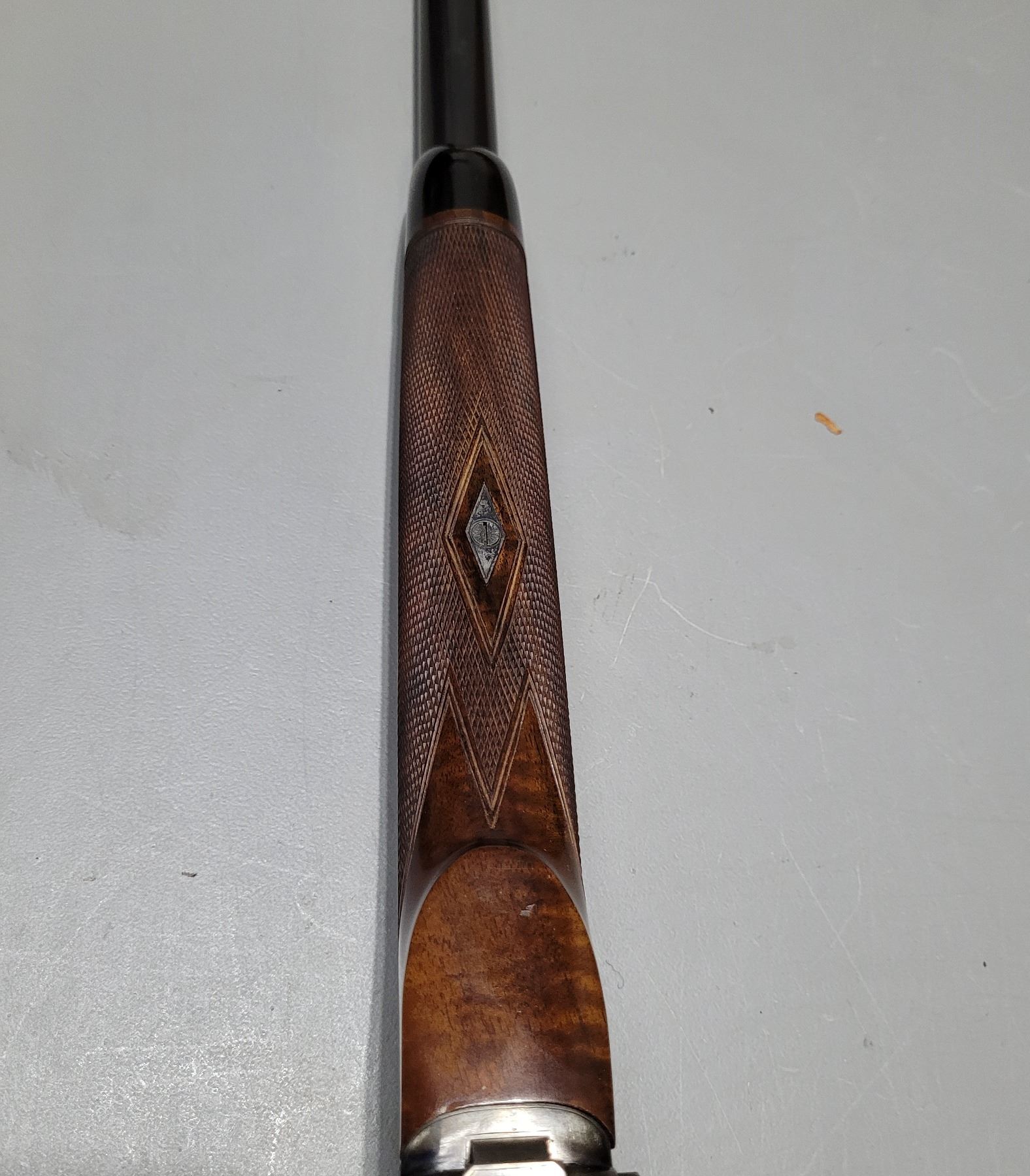 Used W.J. Jeffrey Farquharson re-barreled to 40/70 Sharps Bottle Neck caliber Custom Single Shot Target Rifle. This rifle has a 29" barrel in excellent condition, both inside and out. The rust bluing is in very good condition. The beautiful figured stock and checkering is in excellent condition. The color case hardening is brilliant. Overall, an excellent condition custom rifle.