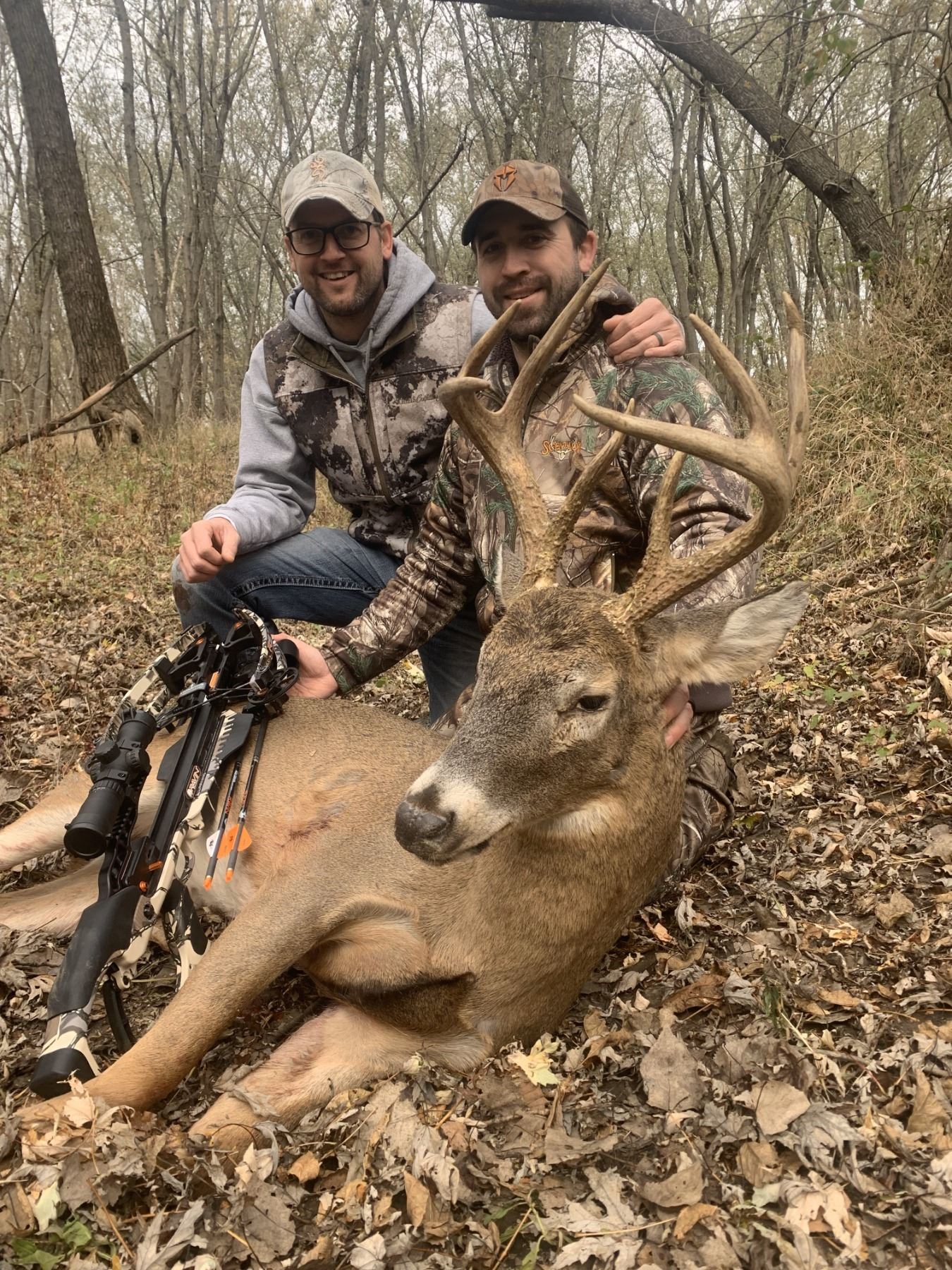 Description: Come join us in the beautiful woodlands of North & Central Missouri for a classic archery/crossbow free range Whitetail Deer hunt. Hunting takes place from tree stands & ground blinds in hardwood forests, along woodland creeks, field edges, and over food plots. Average trophy sizes range from 125-150, with a few 160-180 Missouri bruisers being harvested each year. This is a wild and entirely free ranging hunt that takes place on multiple private land parcels scattered over 4 counties, public lands, and leased grounds. We are the only Licensed Guide & Outfitter hunting 30,000 acres of the pristine Mark Twain National Forest of Missouri on a special use permit. We operate two lodges, one North & one South of I-70. After a full day of hunting, return to the beautiful lodges and enjoy chef-prepared meals.