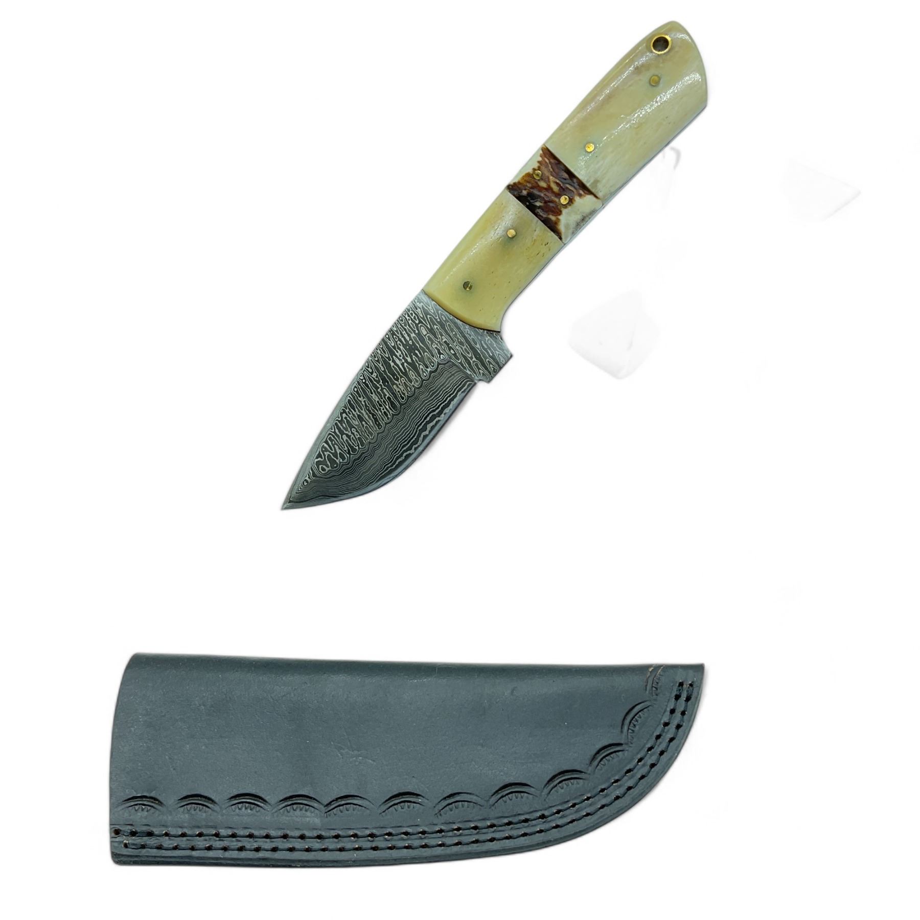 Fixed 3" Blade Knife with Bone Handle and Leather Sheath