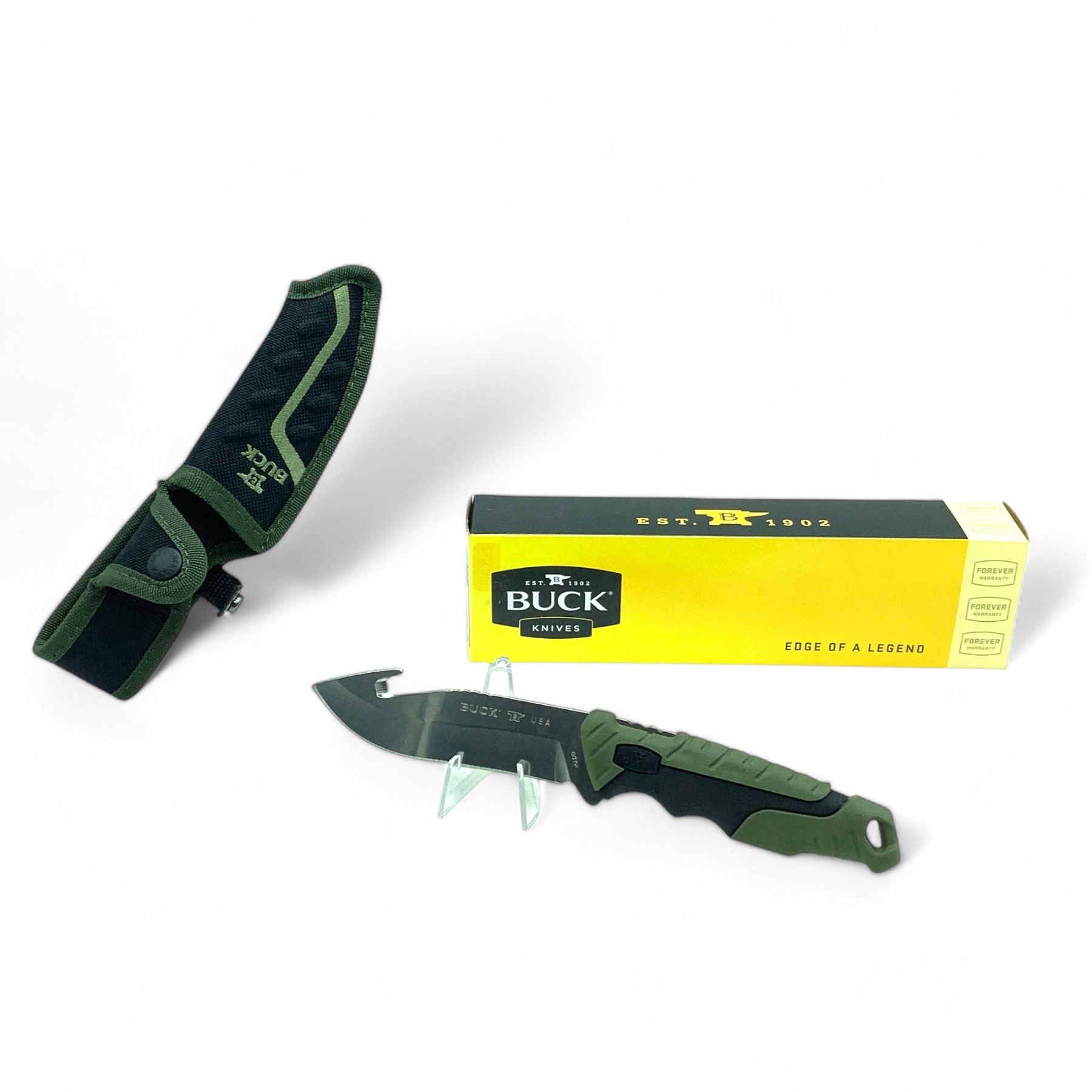 Buck Pursuit Fixed 4 1/2" Gut Hook Blade Knife with Rubber Handle and Belt Sheath, New