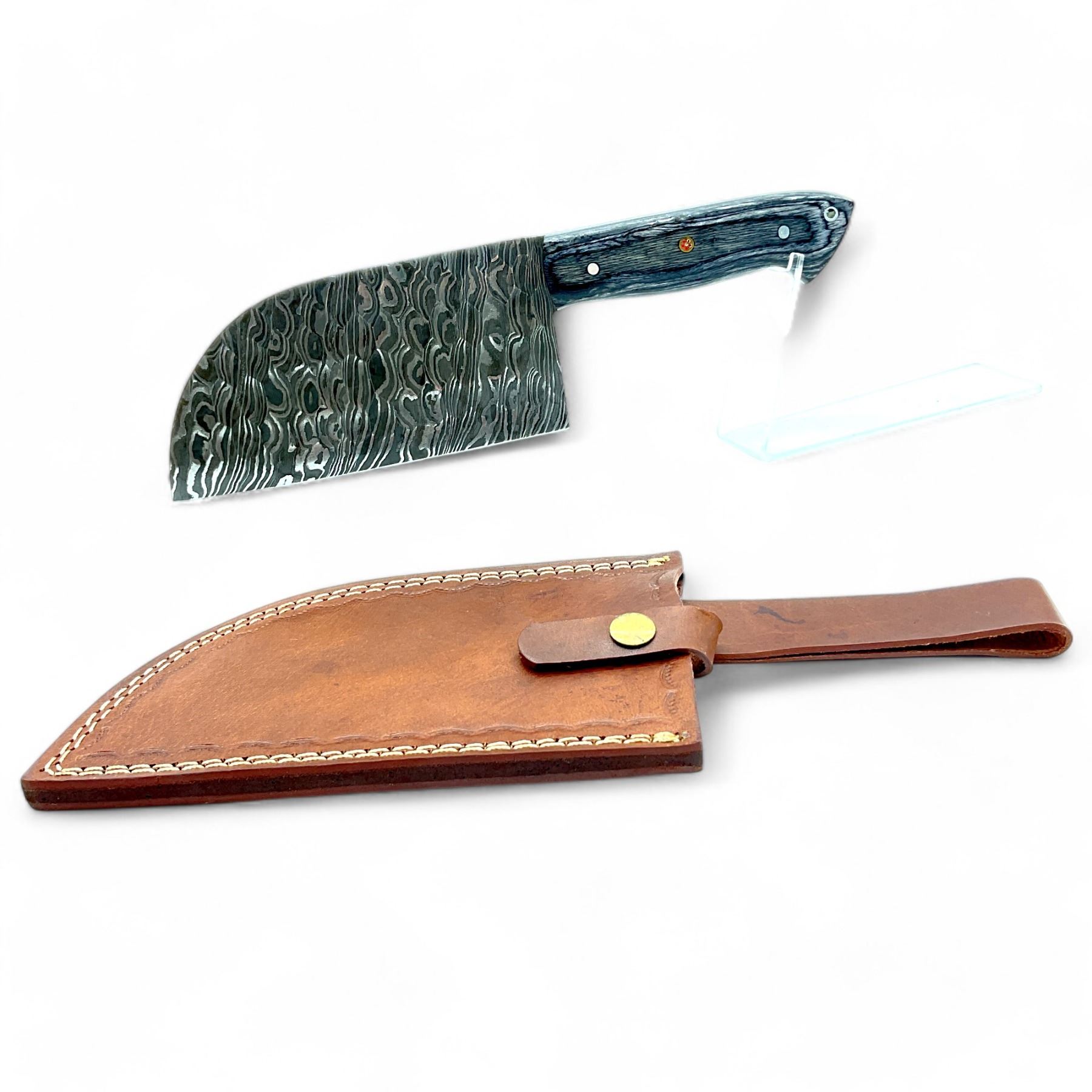 Fixed 6" Damascus Blade Cleaver with Leather Sheath