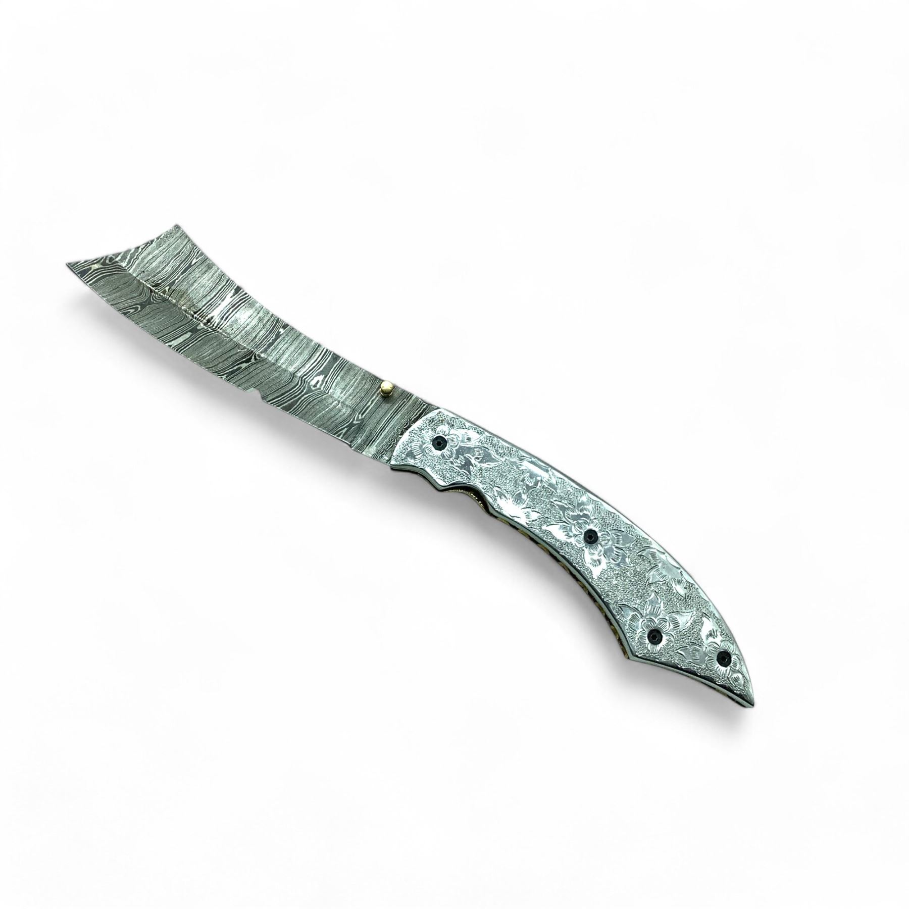 Folding 5-1/2" Damascus Blade Knife, Silver