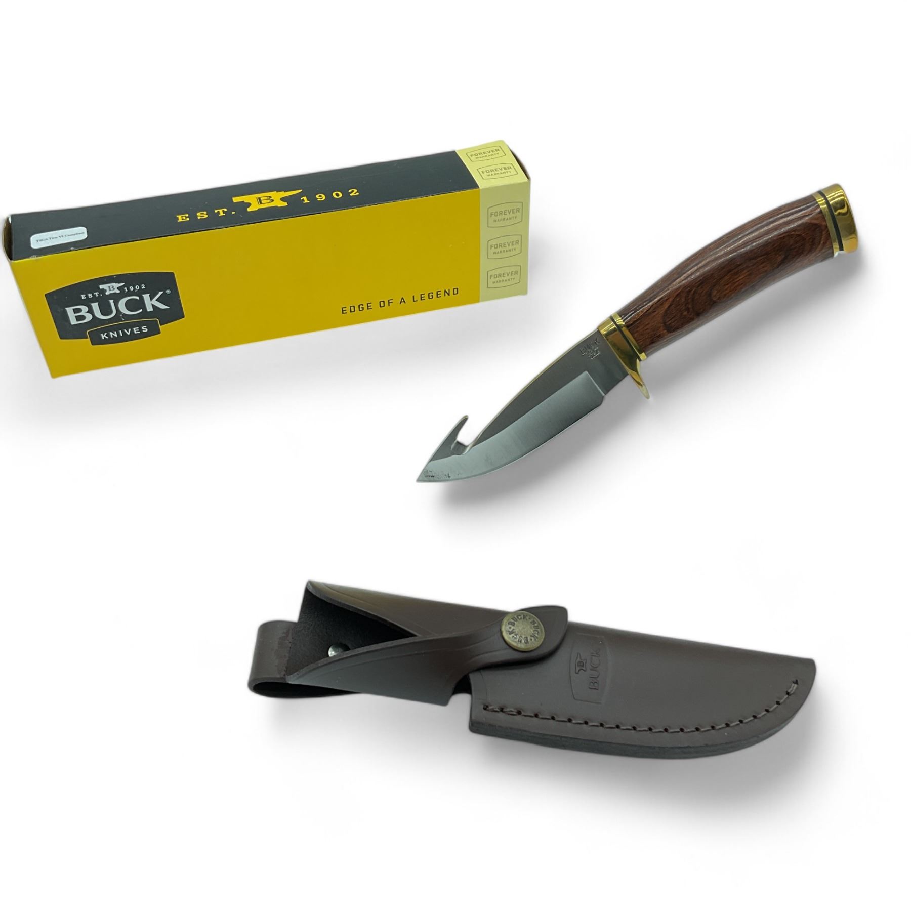 Lot 192 Buck Zipper Fixed 3 1/2" Gut Hook Blade Hunting Knife with Leather Belt Sheath, New