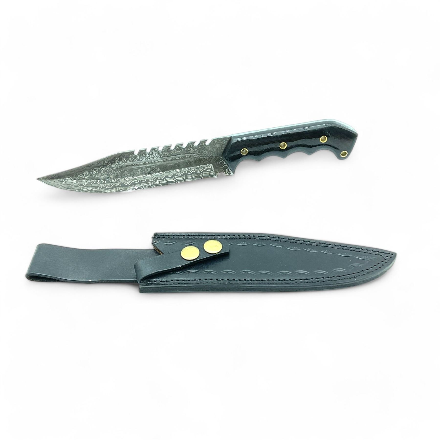 Fixed 6-1/2" Damascus Blade Knife with Leather Belt Sheath