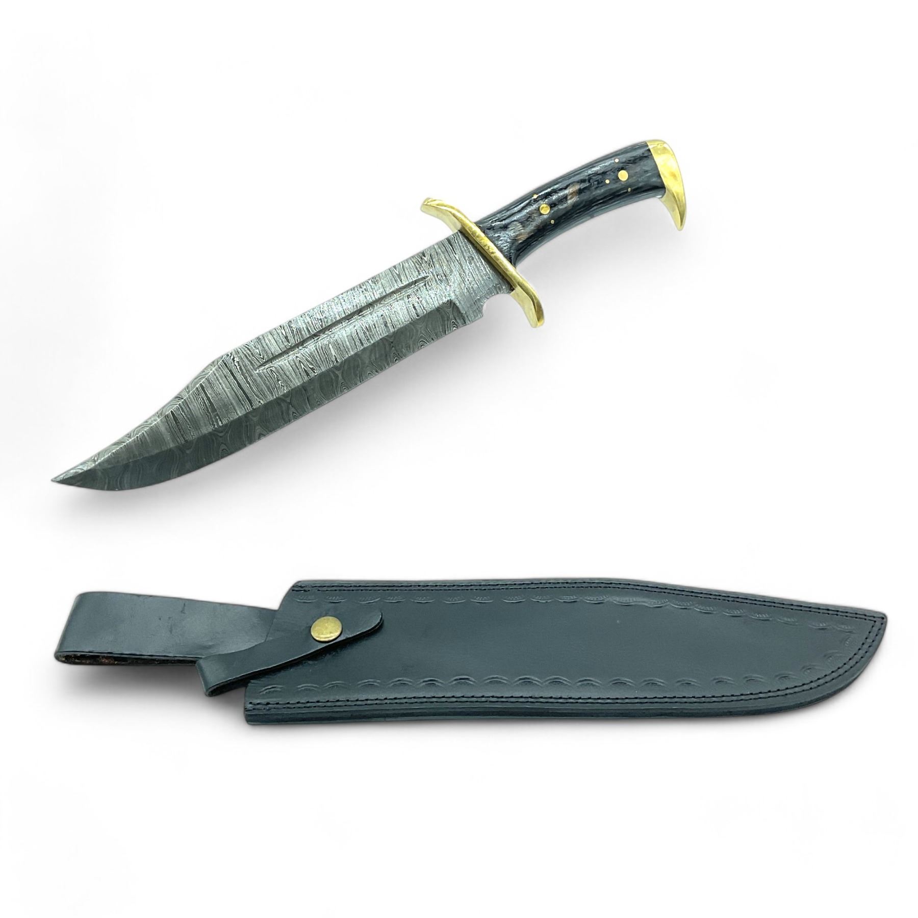 Fixed 10" Damascus Blade Knife with Leather Belt Sheath