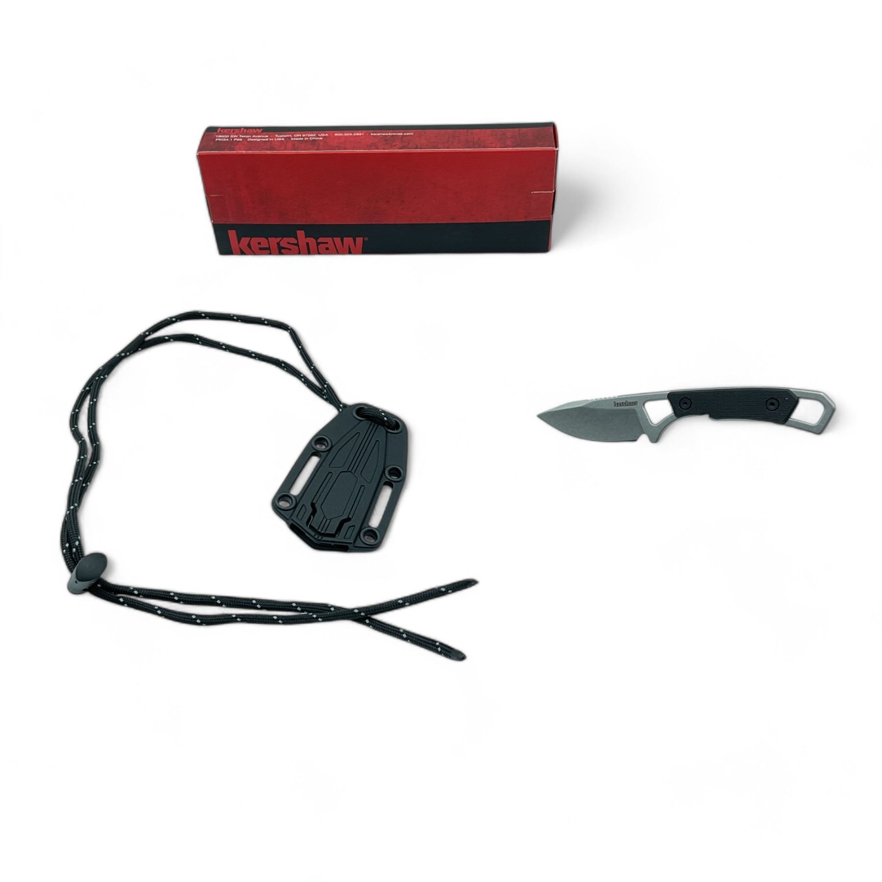 Lot 305 Kershaw Brace Fixed 1-3/4" Blade Knife with Sheath on Lanyard, New