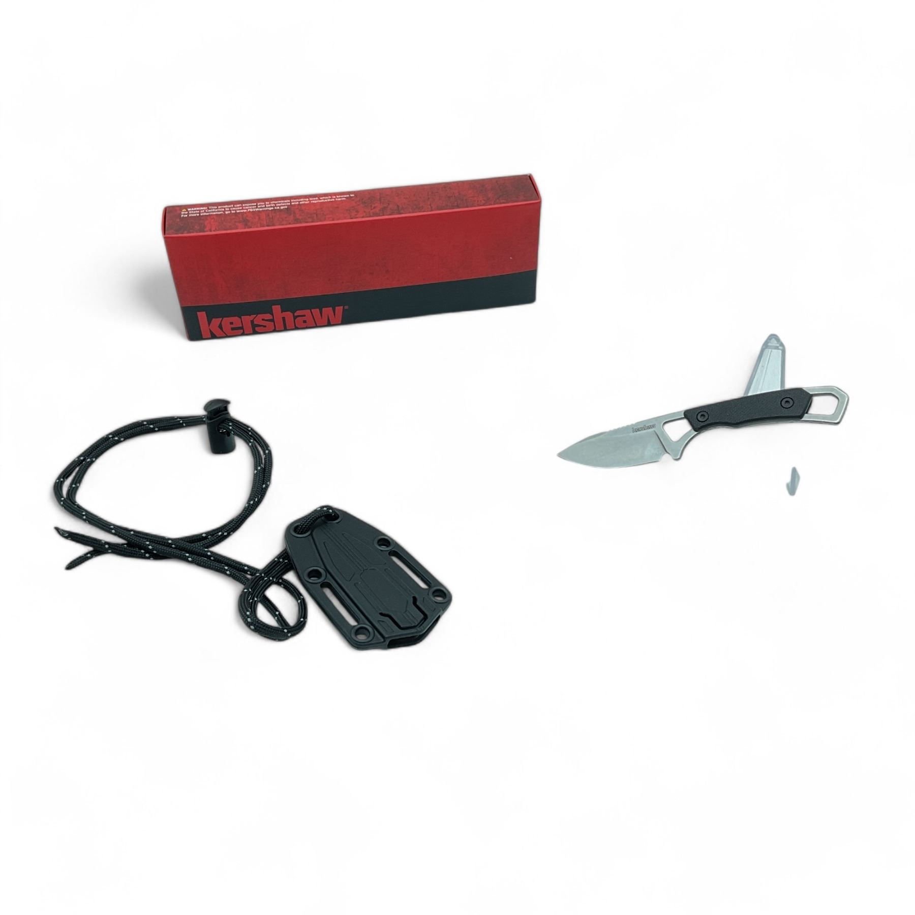 Lot 310 Kershaw Brace Fixed 1-3/4" Blade Knife with Sheath on Lanyard, New